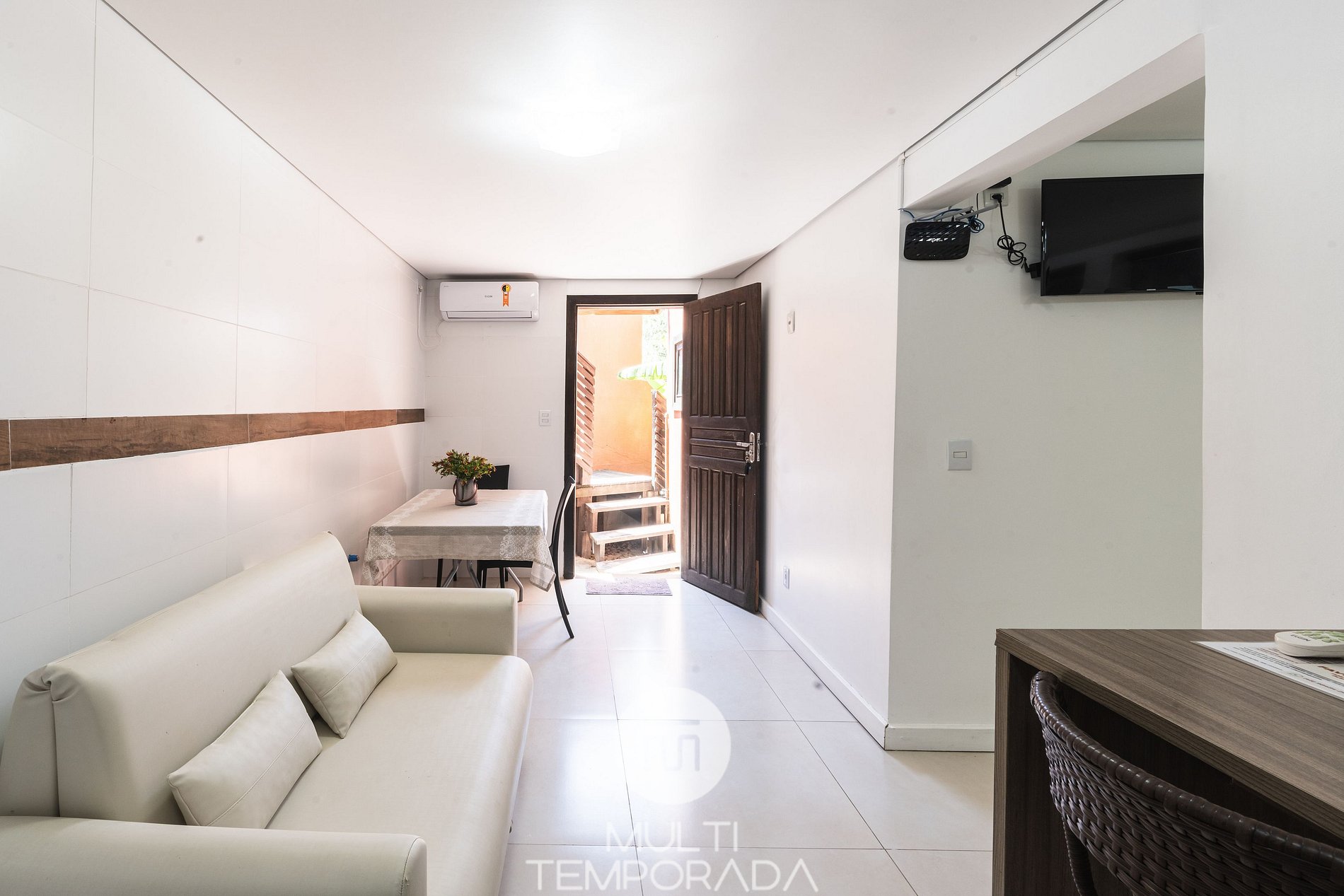 Studio 14 measures 18m² and features a double bed, sofa, 32-inch Smart TV, and closet, ensuring greater convenience and well-being for guests.
