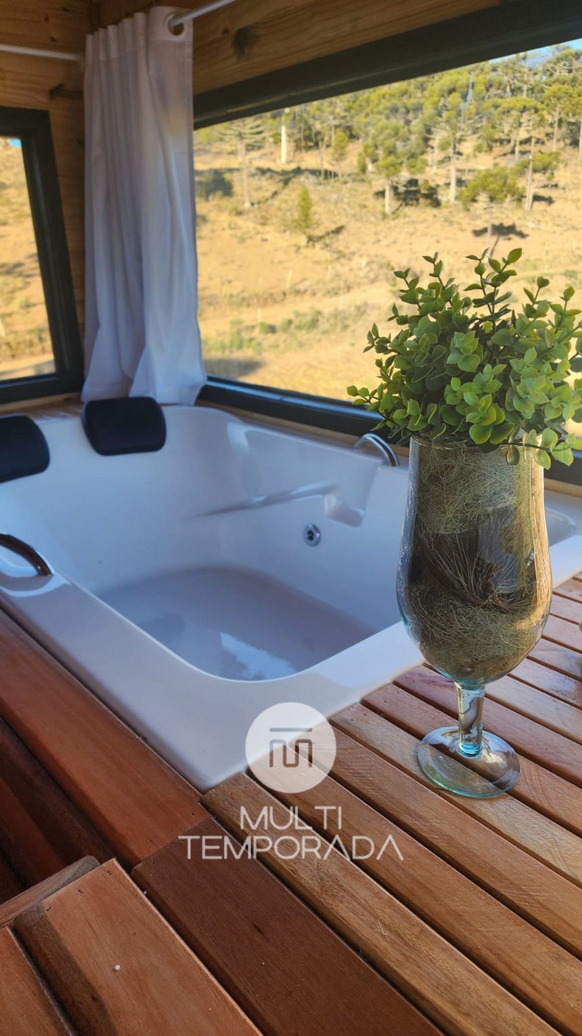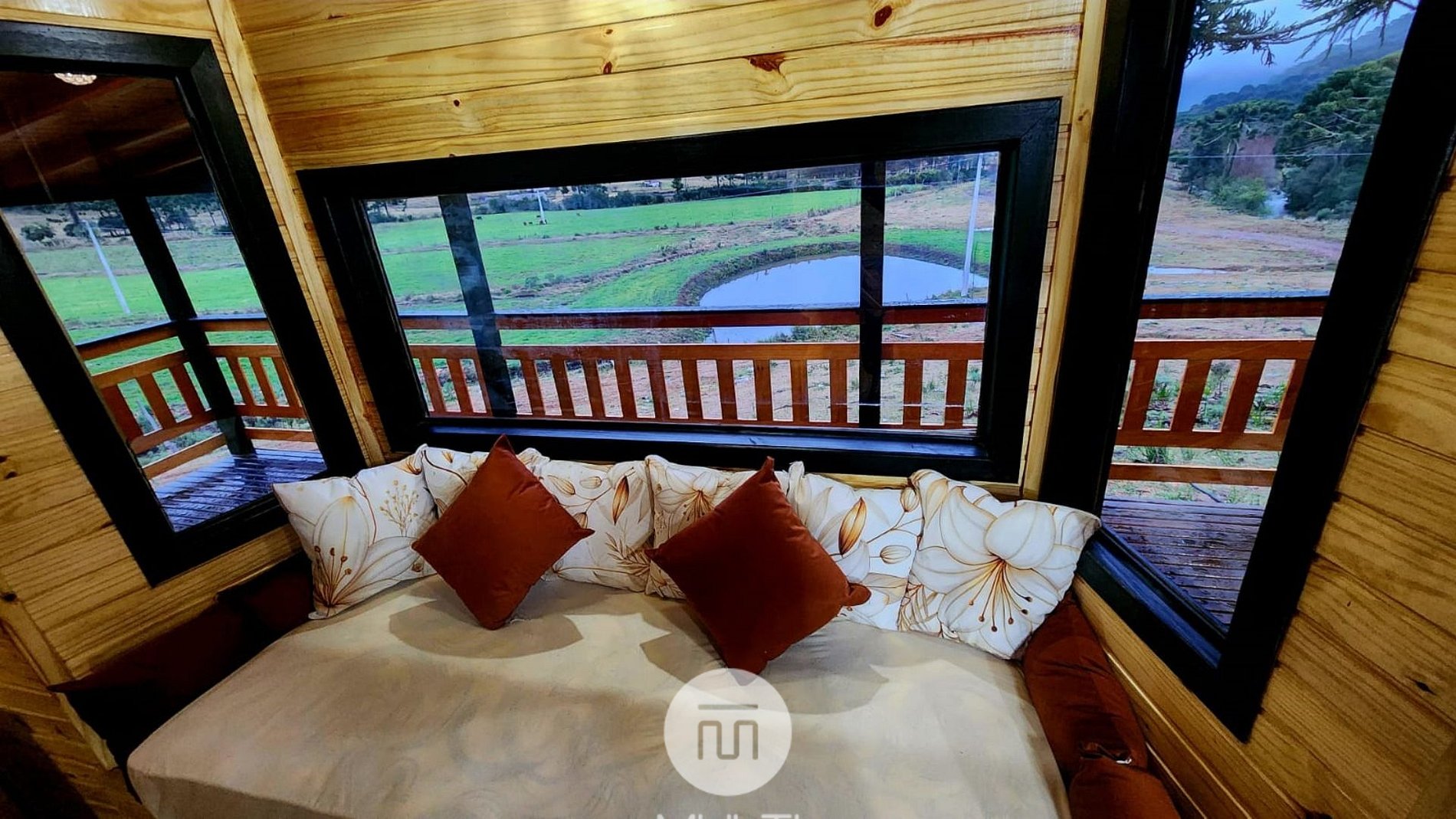 The balcony overlooking the valley and the surrounding lake is one of the property's highlights—the perfect setting to relax, take a deep breath, and enjoy the serenity of the Serra Catarinense.