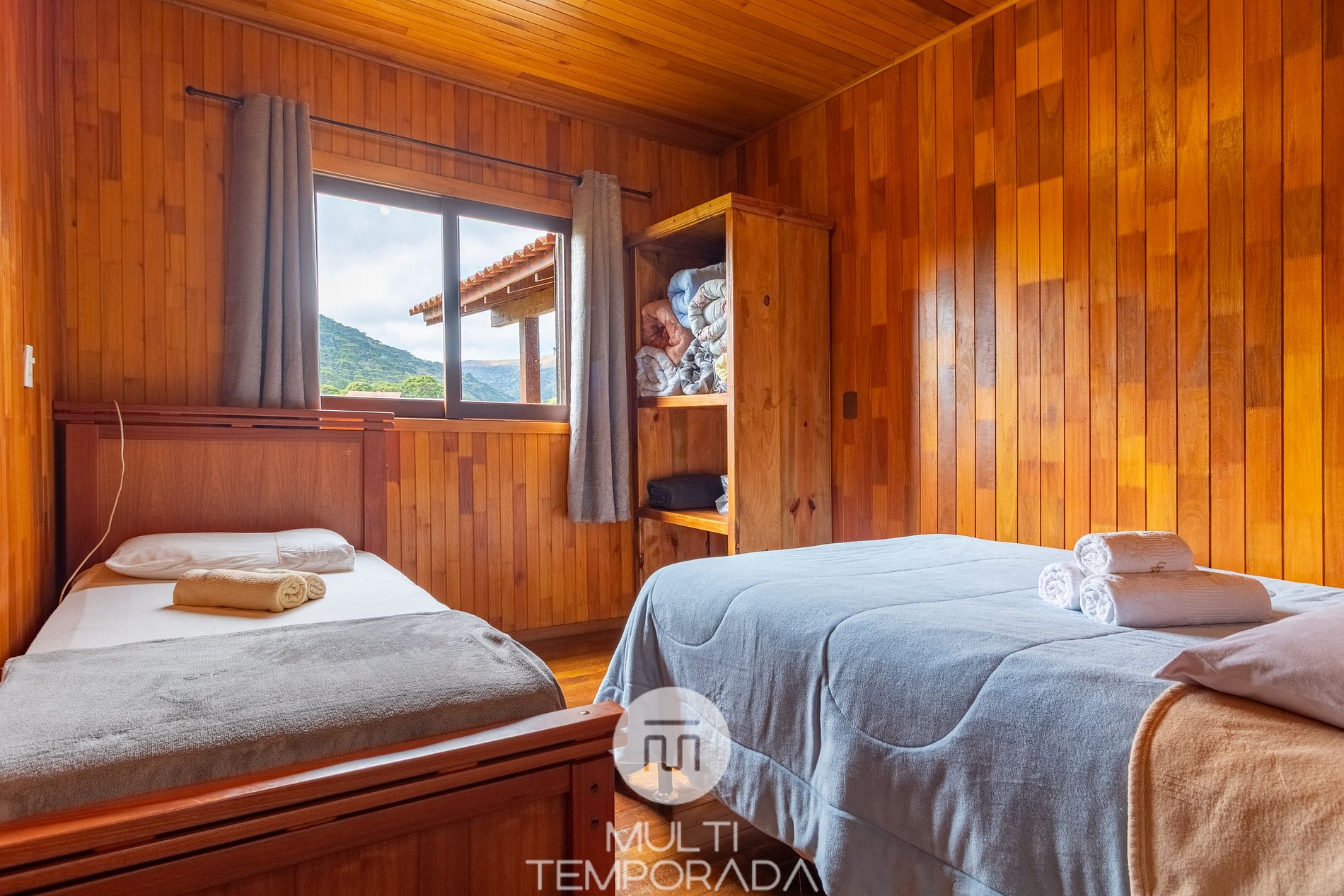 The property's main highlight is its 360-degree mountain views, as well as the rural atmosphere it offers: an orchard, a vegetable garden, a chicken coop, horses to observe and interact with, and a river that runs through the area—known as "lava-tudo"—providing a unique setting. The cabin's water comes from a spring and an artesian well, adding even more authenticity to the experience.
