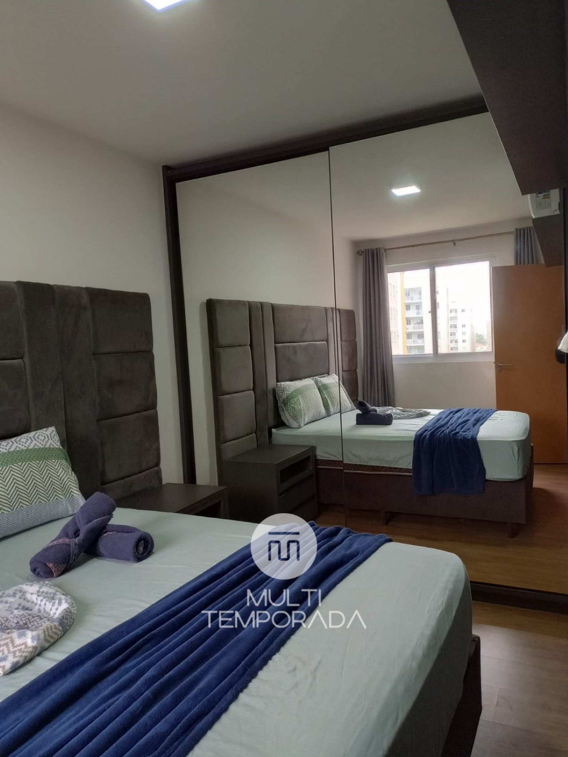 The apartment is new and stands out for its architecture and view. It has 58 square meters with a balcony with barbecue and barbecue facilities, two air-conditioned bedrooms, a full kitchen, air-conditioned living/dining room and a shared bathroom.