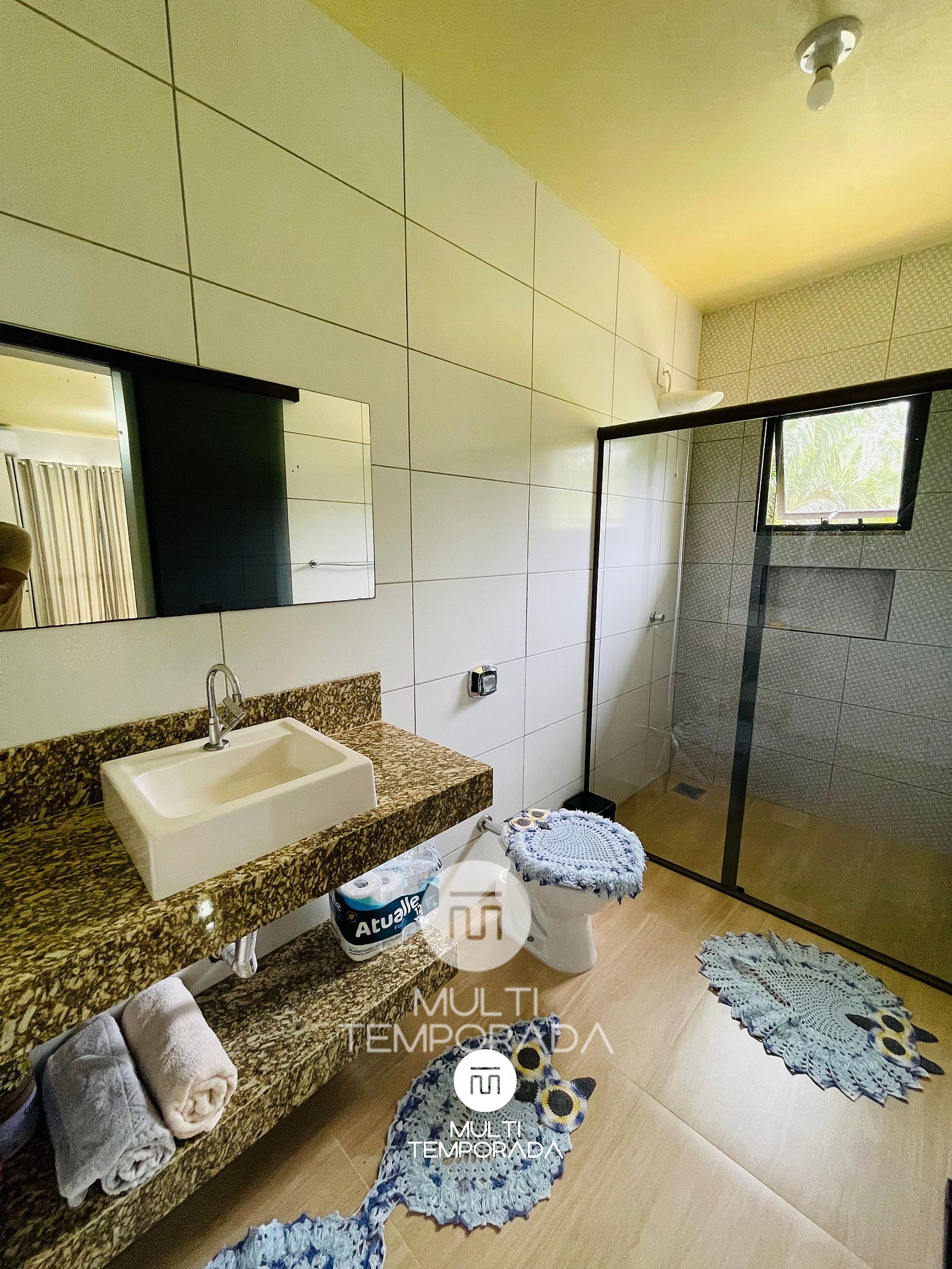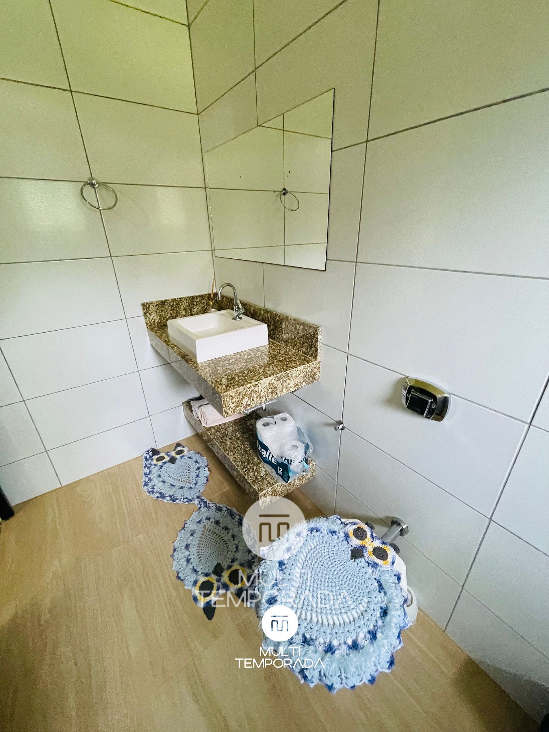 The living room is an invitation to socializing. With comfortable armchairs, wooden tables, a counter with stools, and a 32” Smart TV with live channels, movies, and series, it's the perfect environment to relax at night, watch a movie, or simply enjoy the cozy atmosphere of the country house. The space also has a full bathroom with a shower.