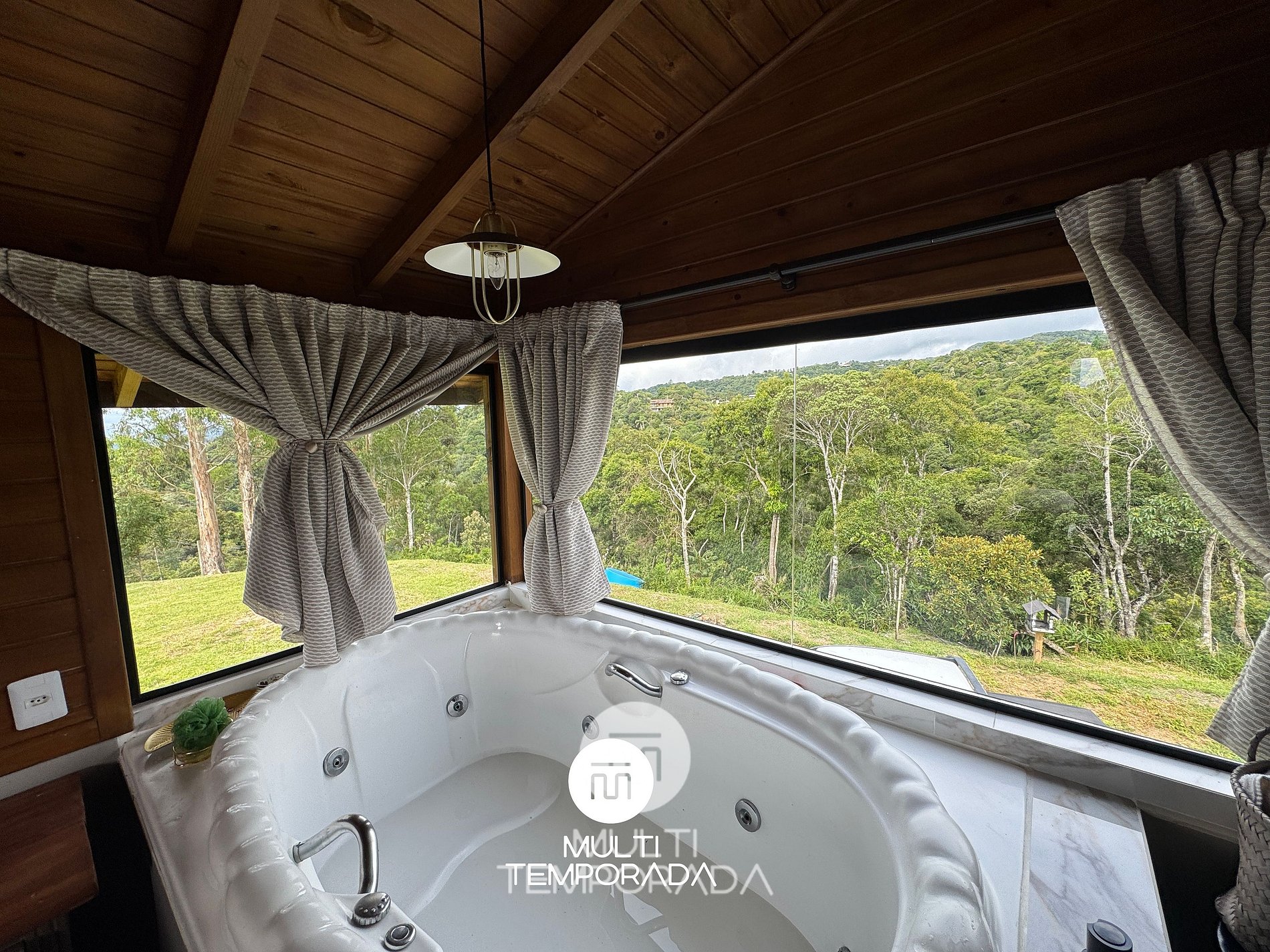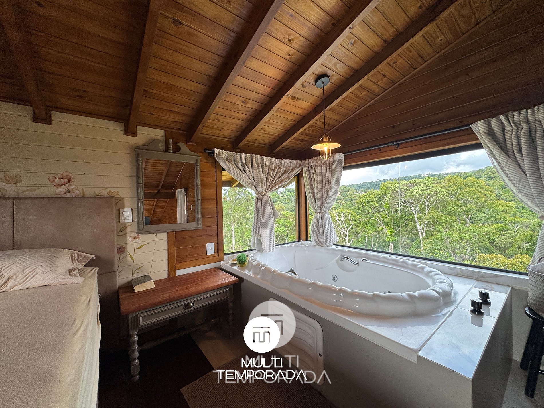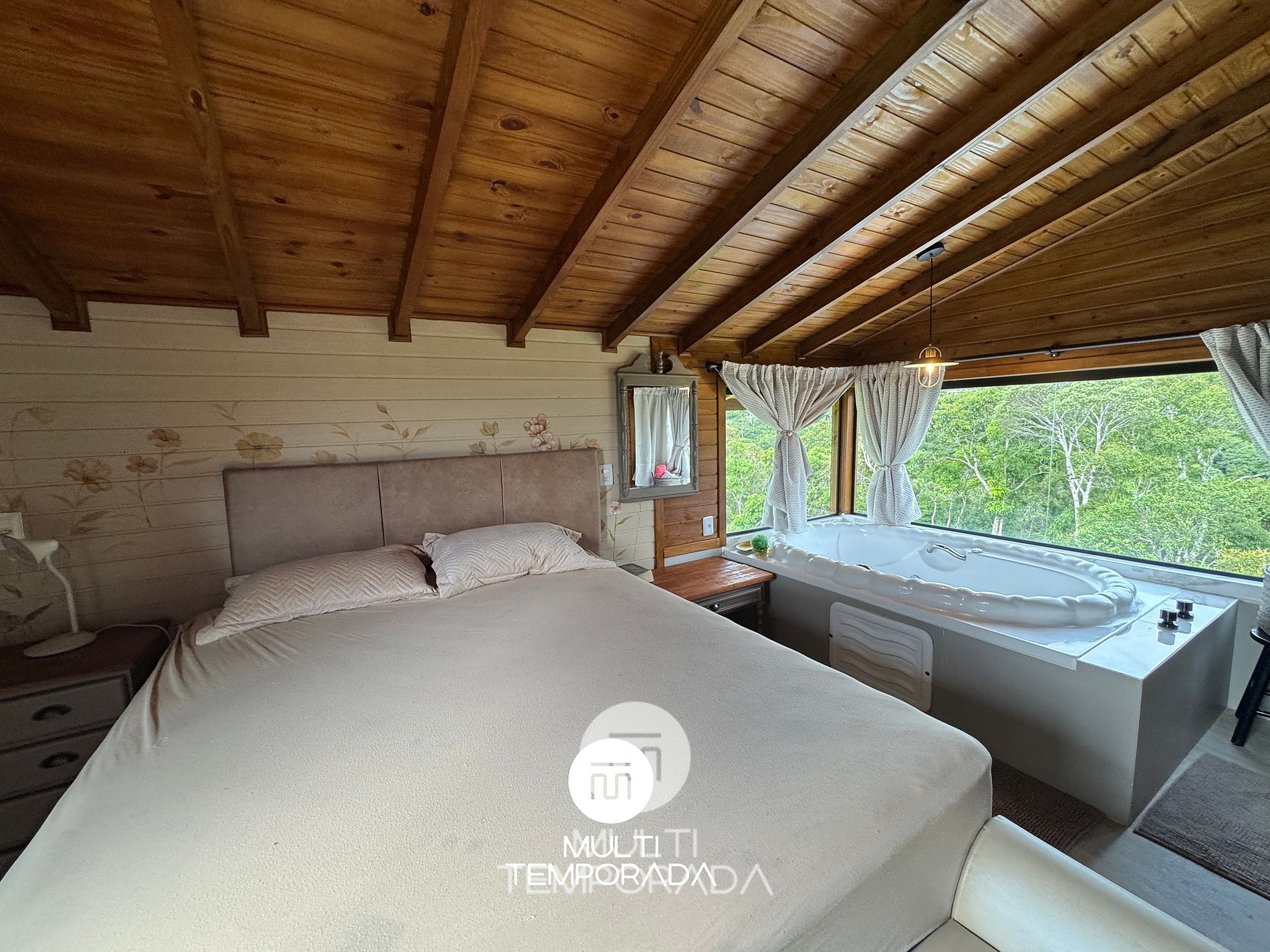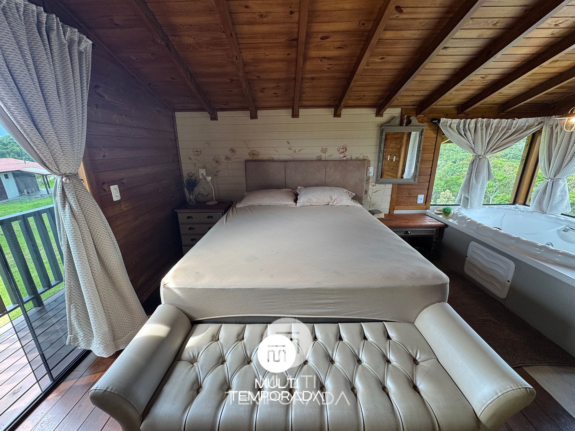 Chalé do Campinho in Rancho Queimado, SC offers comfort and leisure surrounded by nature. With 70m², it accommodates up to 5 people in a room with a queen bed, sofa bed, and extra mattress. It features a jacuzzi on the mezzanine, balcony, equipped kitchen, 40-inch smart TV with Chromecast, Wi-Fi, portable barbecue grill, parking for up to 6 cars, infinity swing, and firepit. Ideal for relaxation and special moments.
