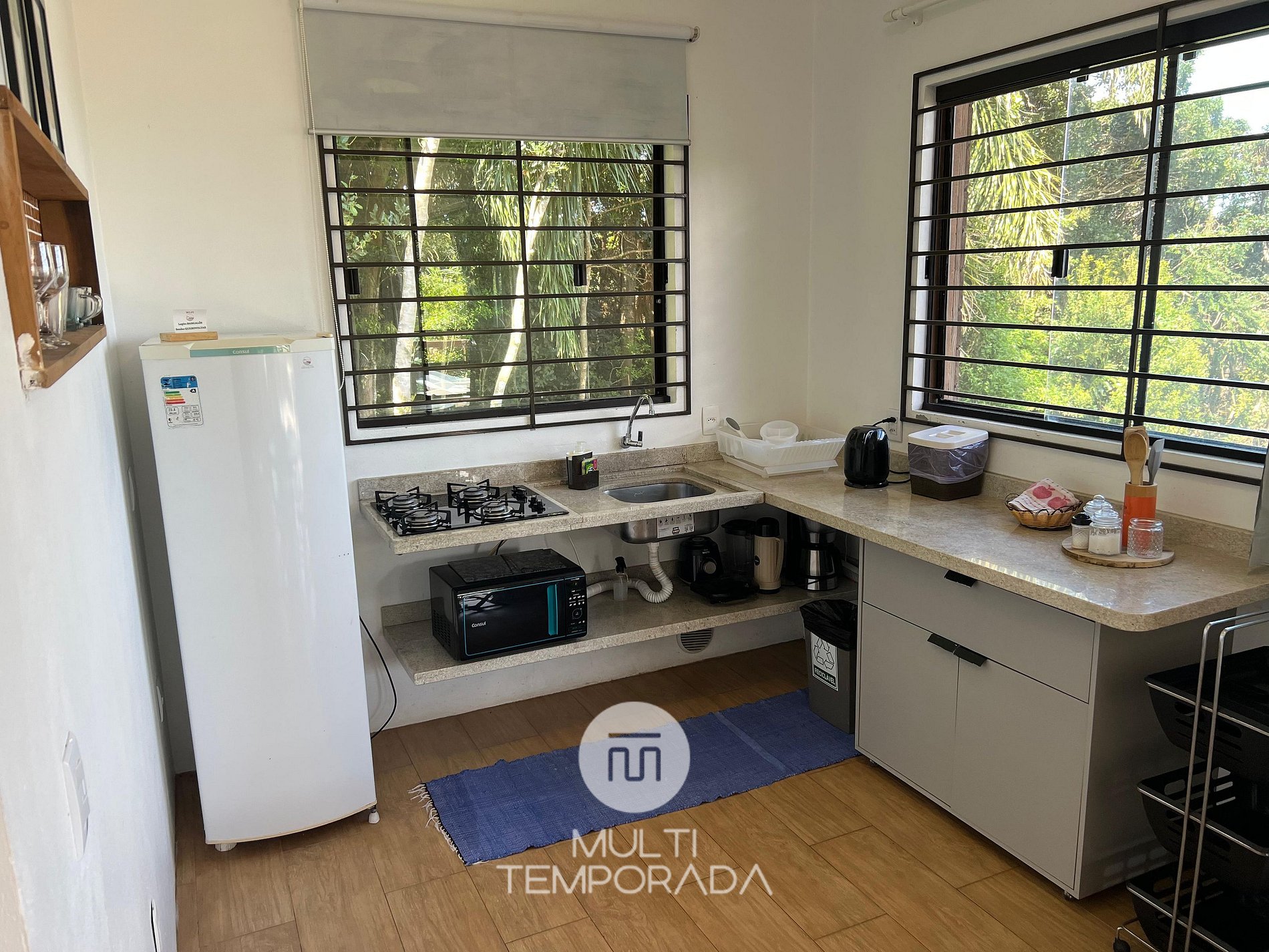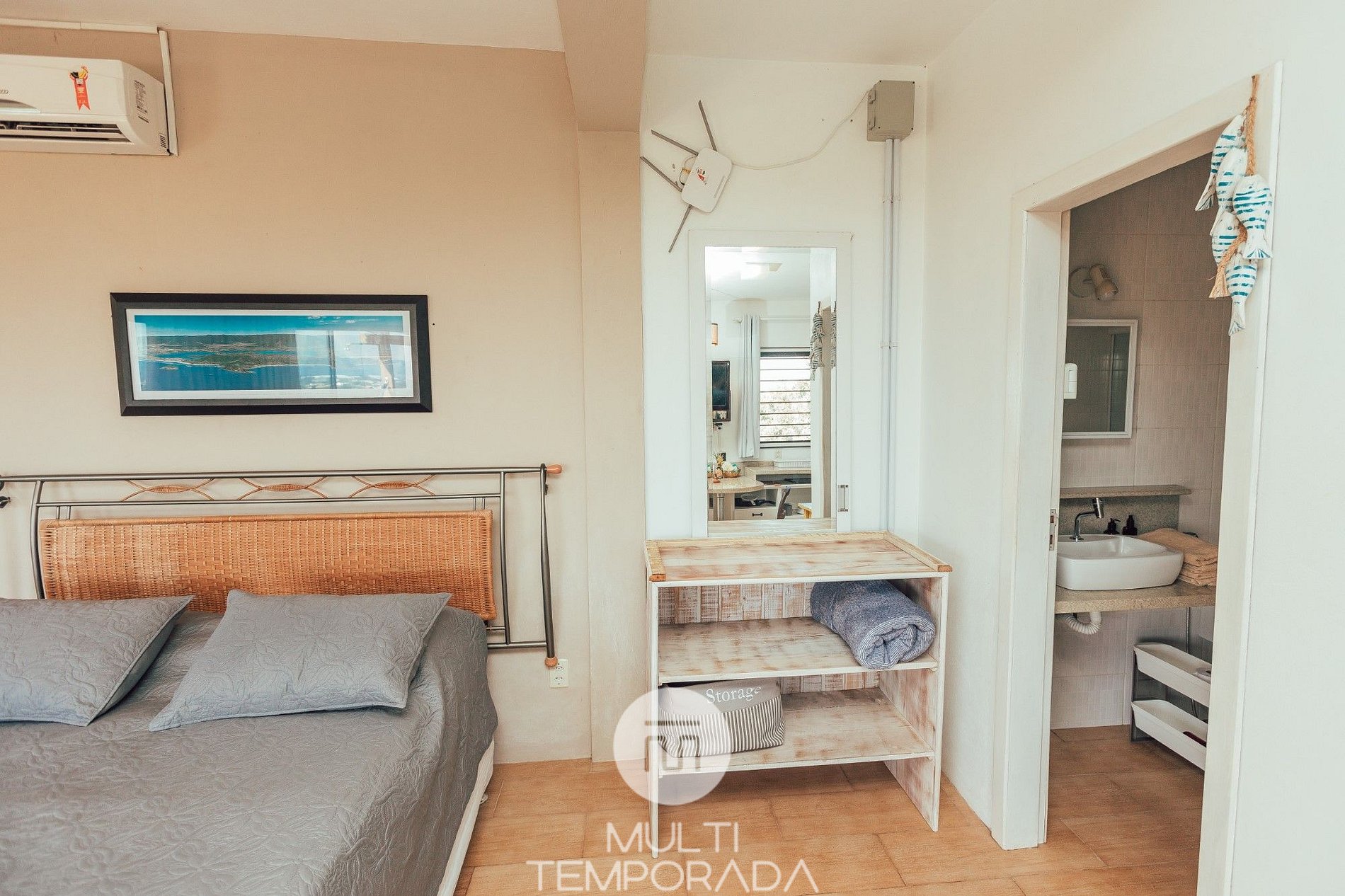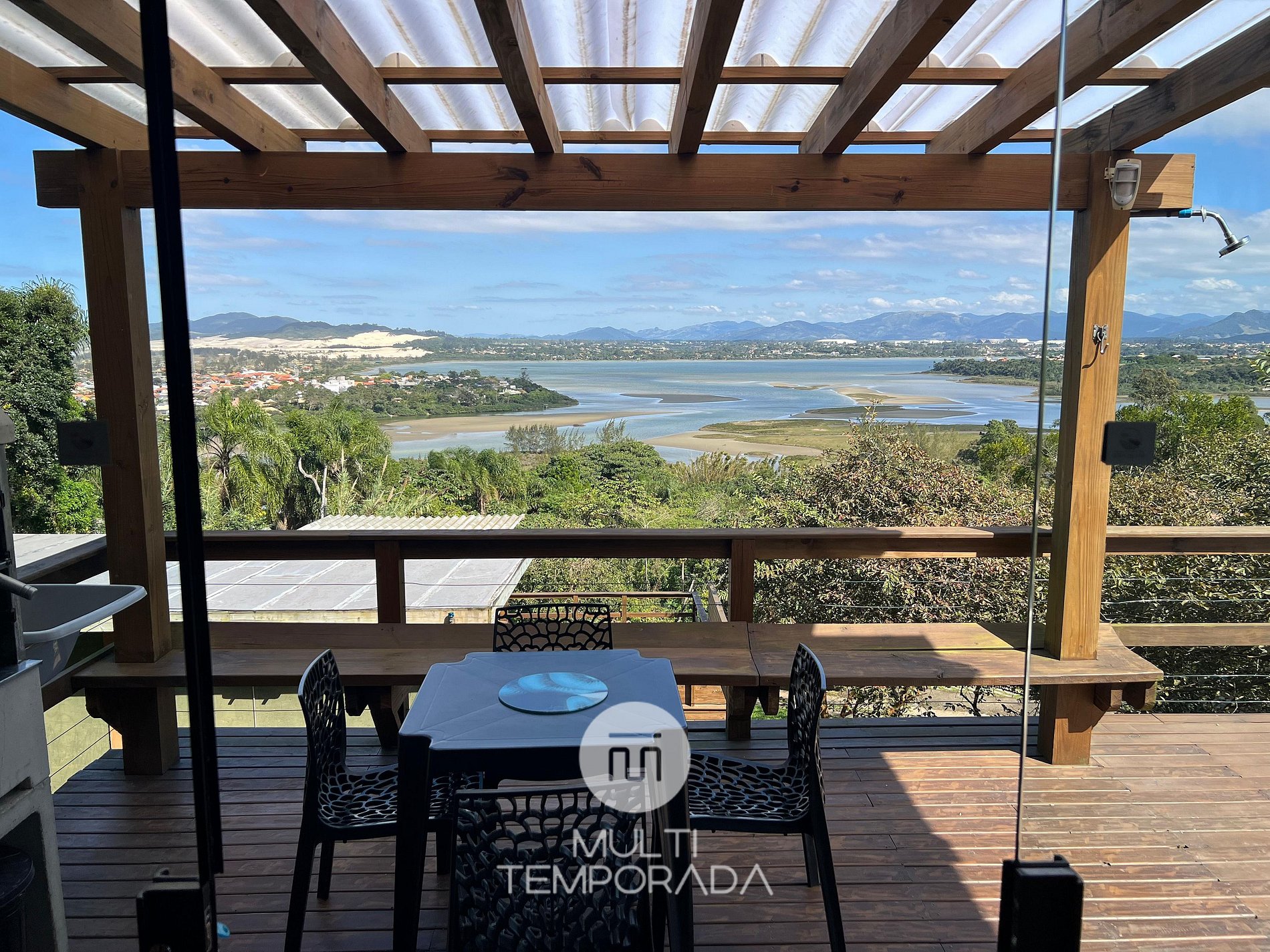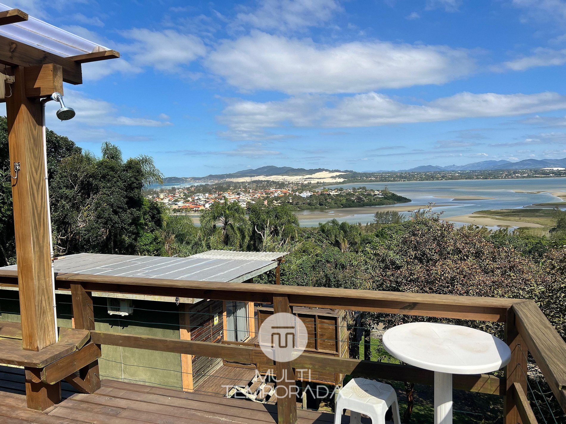 Multitemporada presents the Bangalô Antilla, one of the 6 units of Chalés & Bangalôs Ibiraquera, which has a privileged location and view of the lagoon in the Ibiraquera neighborhood, in Imbituba, on the coast of Santa Catarina. All of our 6 units are private, with the pool and the fire pit being the only shared spaces on the property.