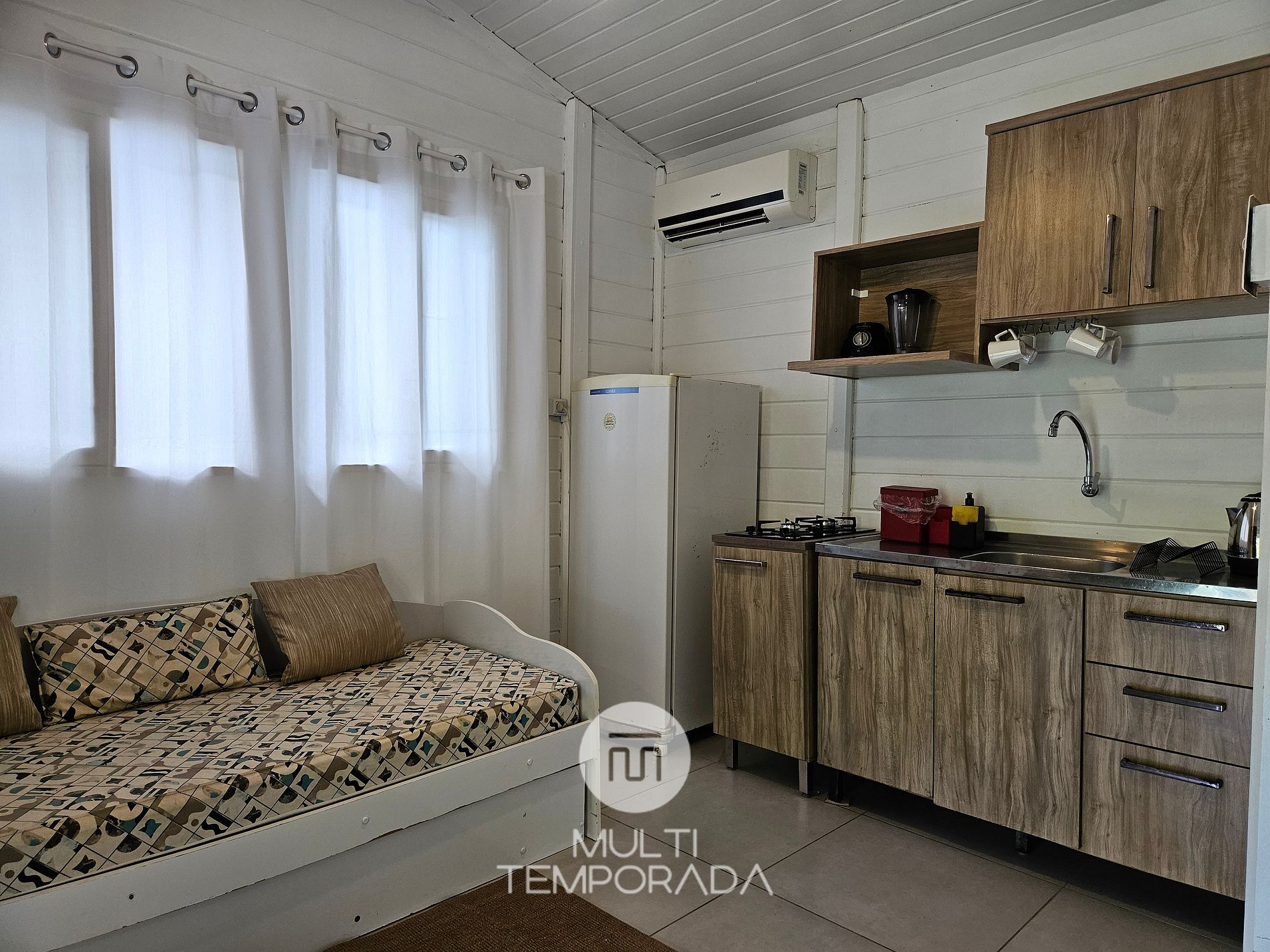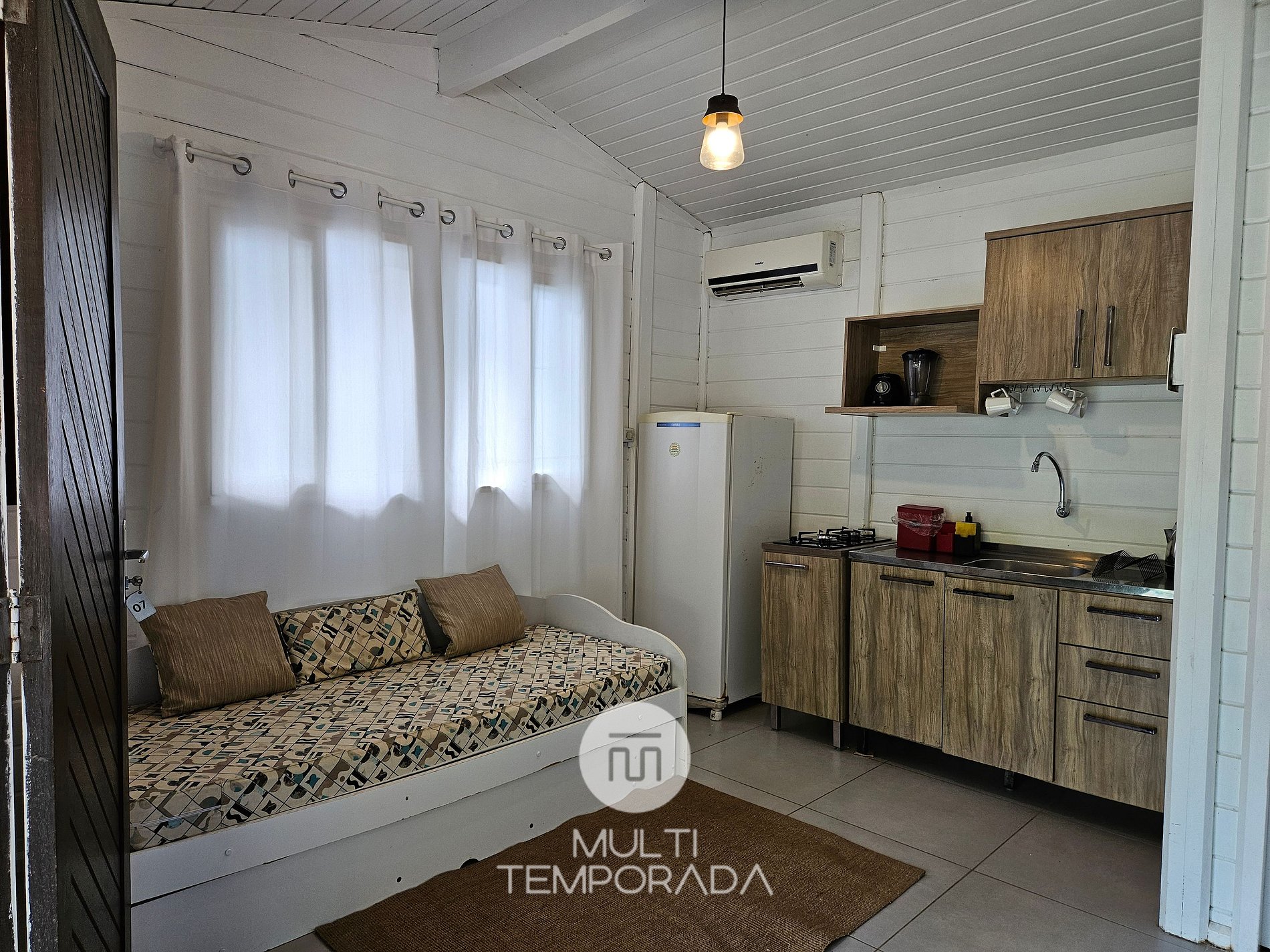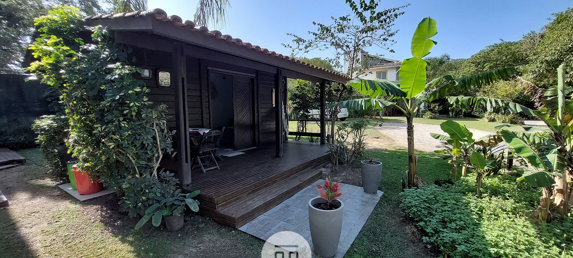 Chalé da Bananeira is a small house with a guest house style, made of hardwood with the internal space all combined. Comprising a balcony with hammock, double box-spring bed and single bunk bed, bathroom, kitchenette with all the appliances and utensils necessary for cooking, air conditioning, TV, 270 mega WI-FI internet for home office. Finally, we provide bed and bath linen;