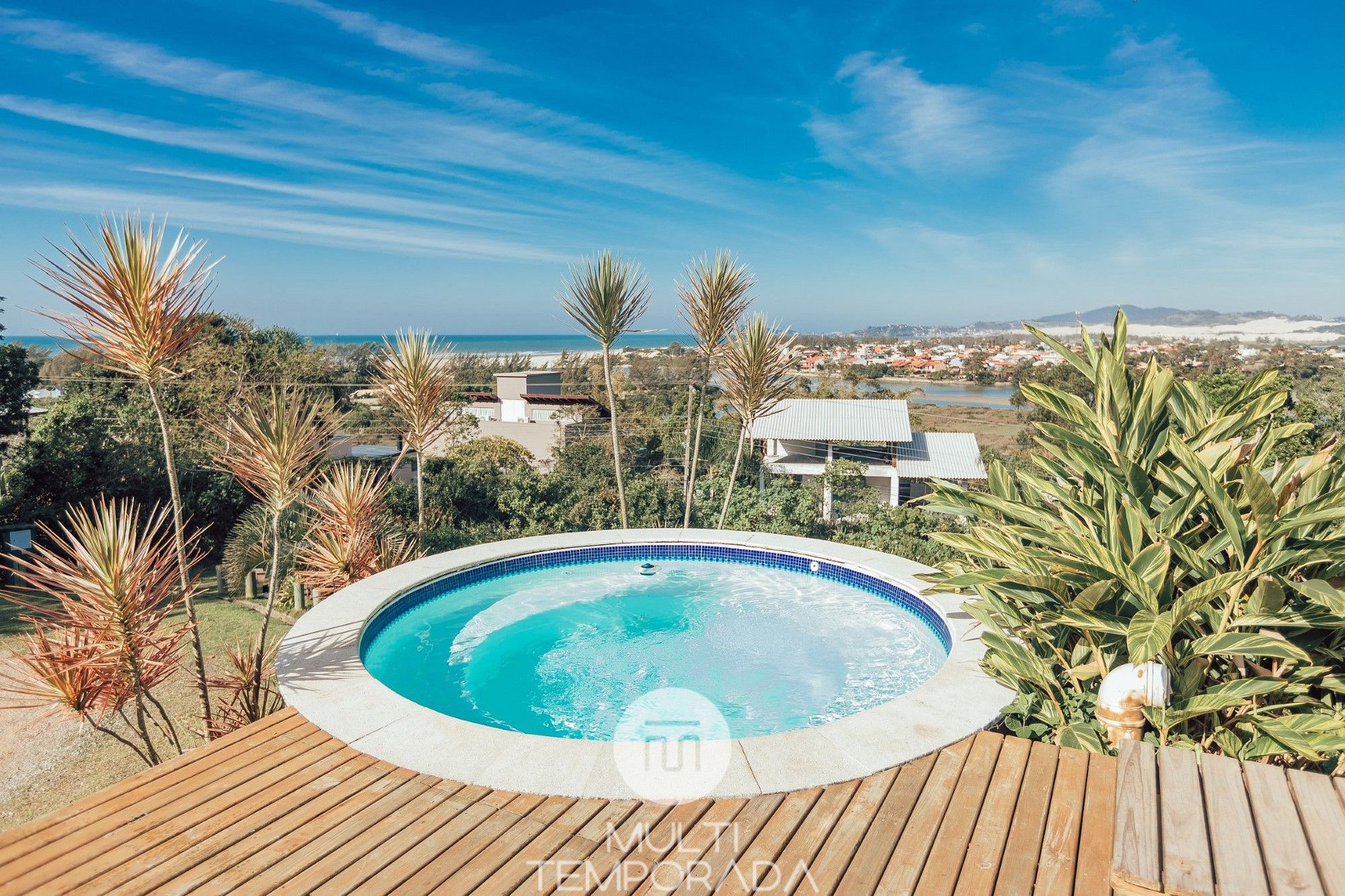 Multitemporada presents the Aquarius Bangalô, one of the 6 units of Chalés & Bangalôs Ibiraquera, which has a privileged location and view of the lagoon in the Ibiraquera neighborhood, in Imbituba, on the coast of Santa Catarina. All of our 6 units are private, with the pool being the only shared space on the property.