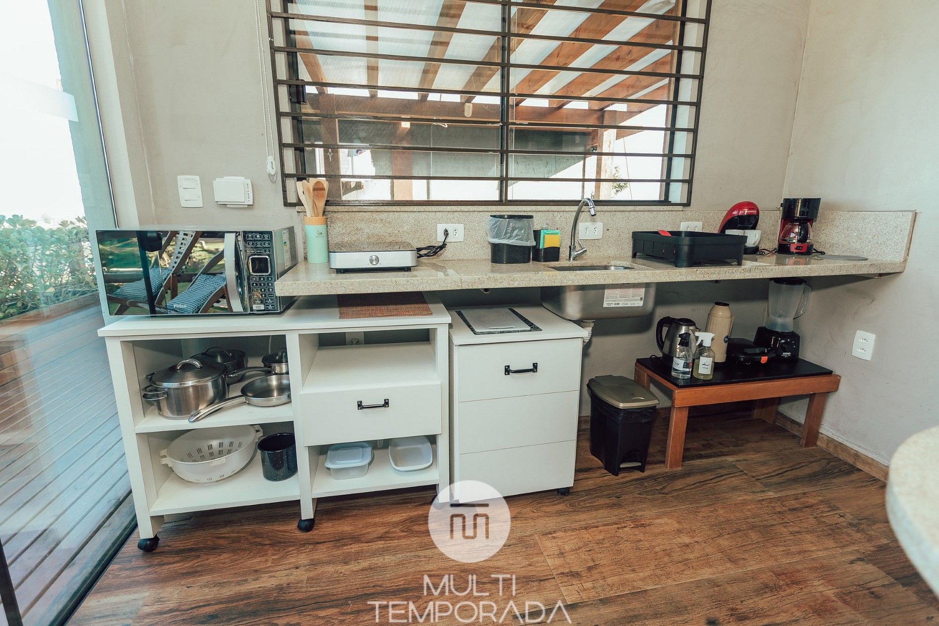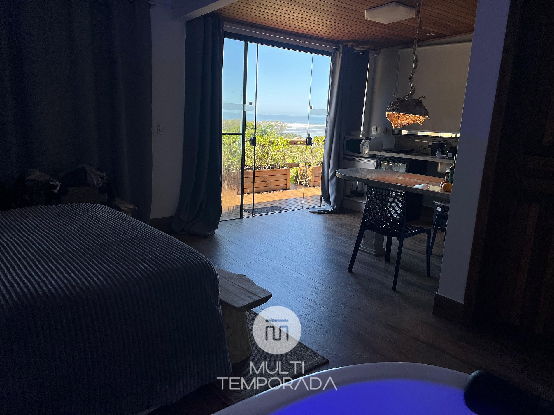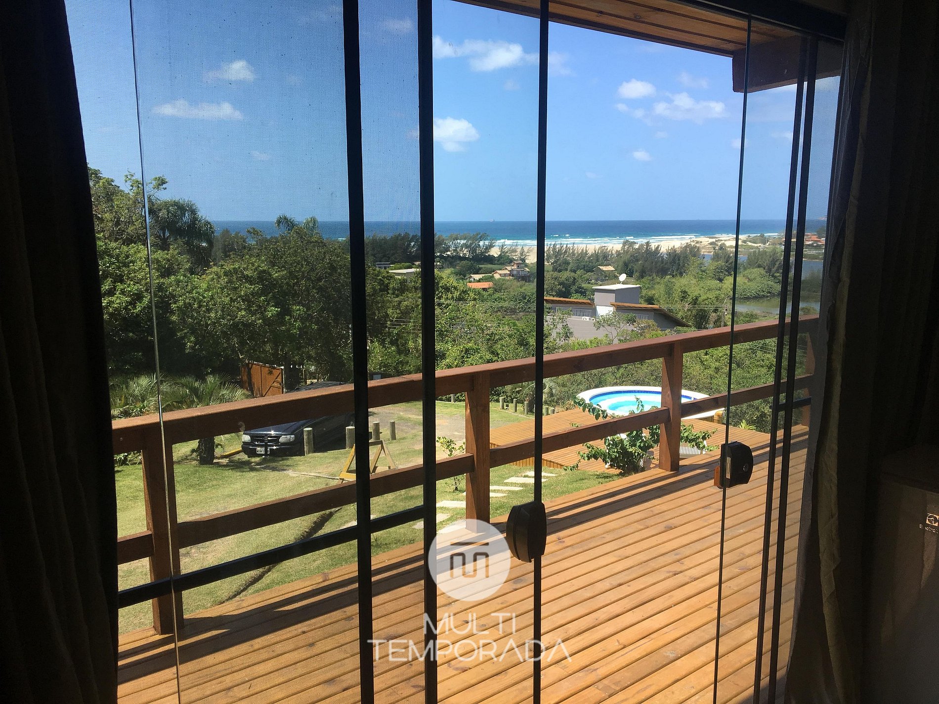 Multitemporada presents Bangalô Pyxis, one of the 6 units of Chalés & Bangalôs Ibiraquera, which has a privileged location and view of the lagoon and the sea in the Ibiraquera neighborhood, in Imbituba, on the coast of Santa Catarina. All of our 6 units are private, with the pool being the only shared space on the property.