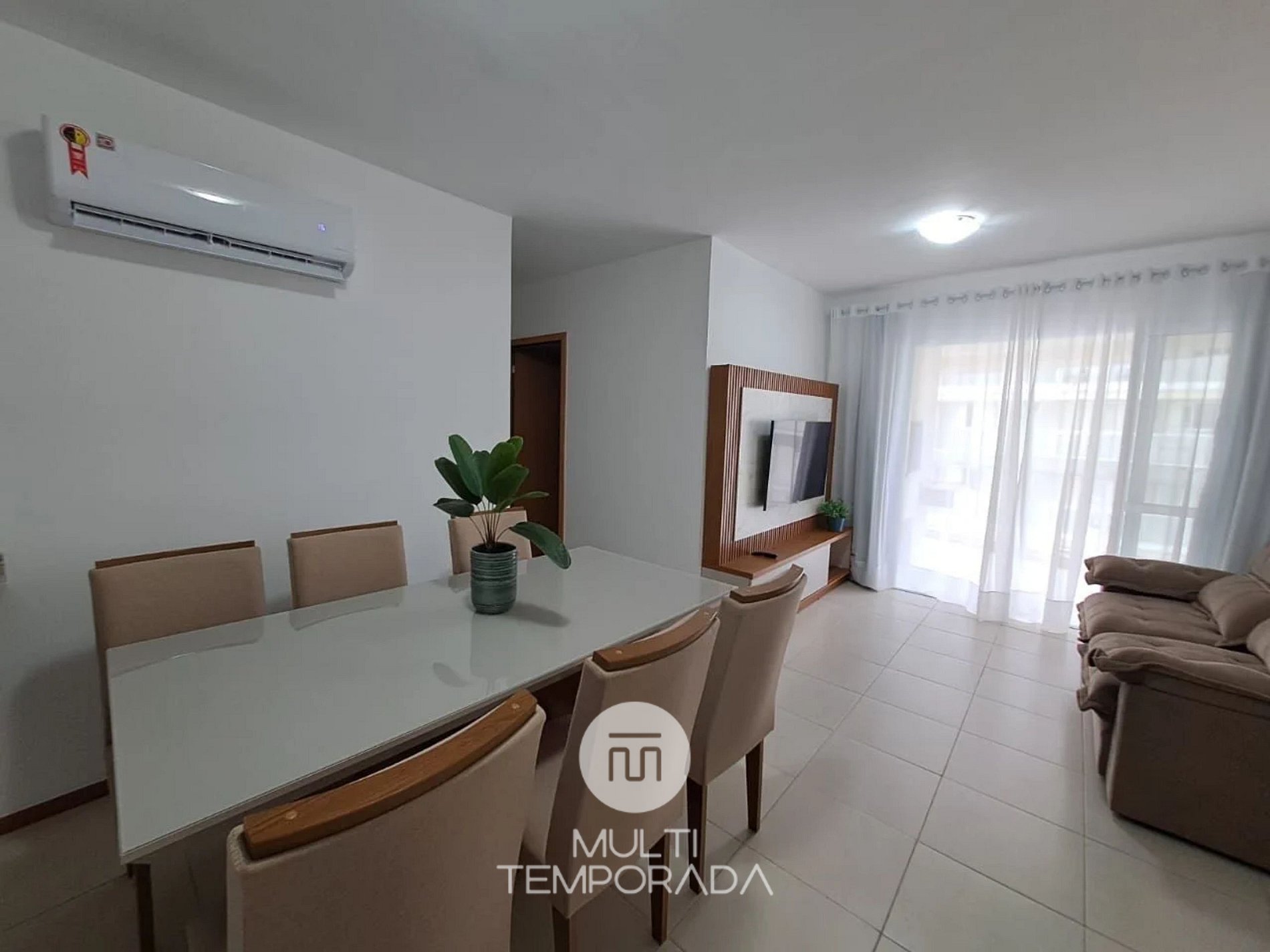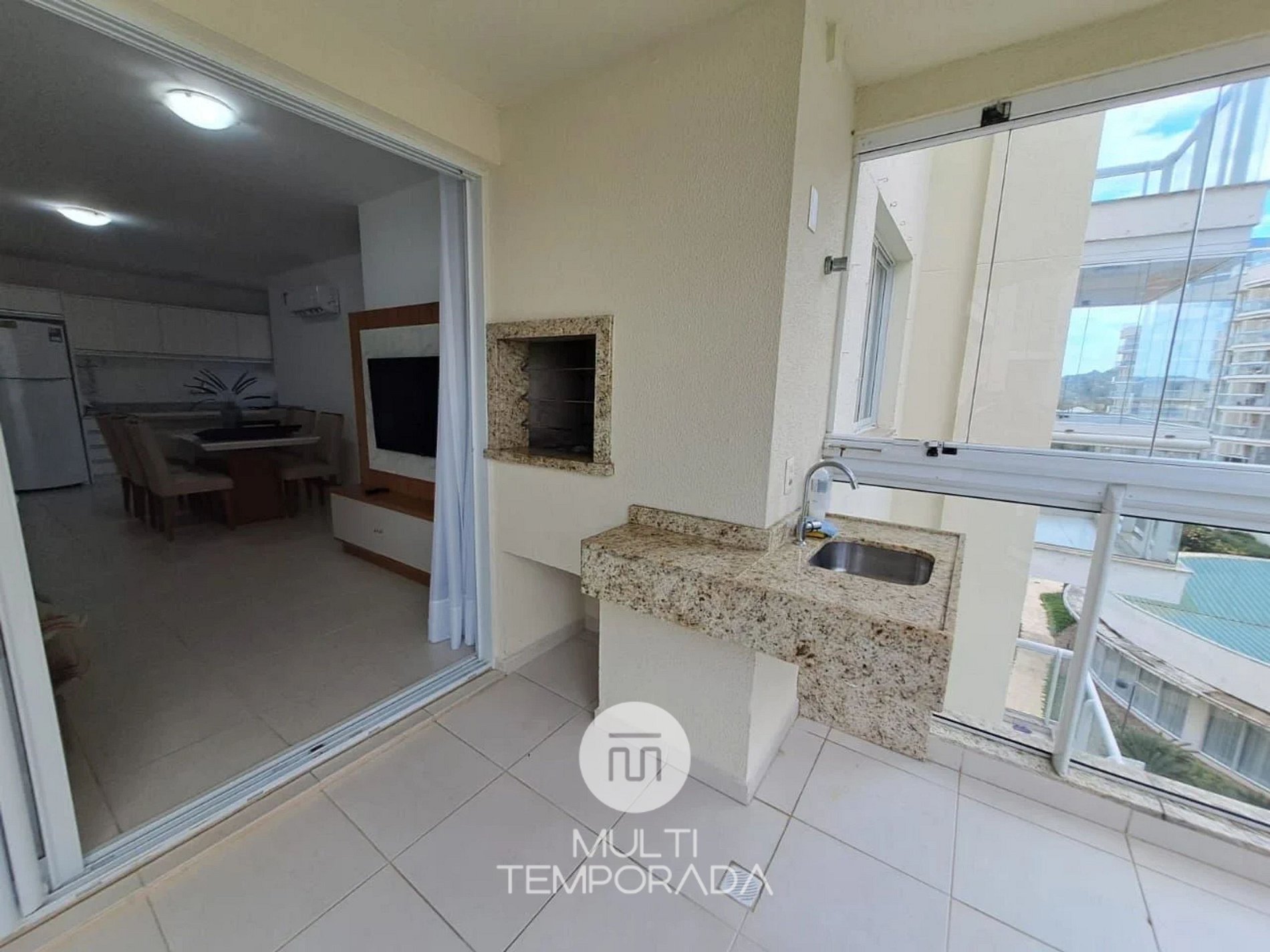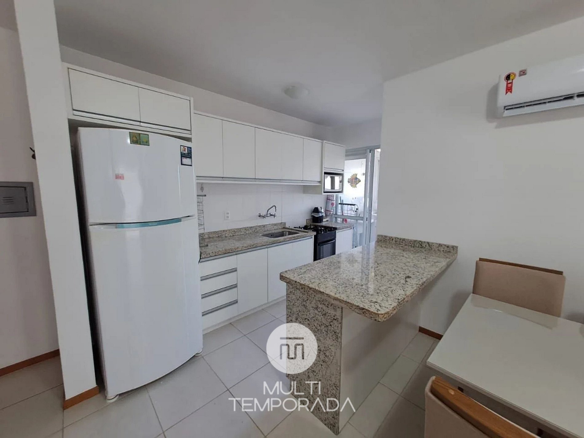 The apartment offers 90 square meters with a balcony and barbecue area, three air-conditioned bedrooms (one of them a suite), kitchen and living room integrated and both equipped with split air conditioning. The kitchen comes with a stove, gas oven, refrigerator, microwave, coffee maker, electric kettle, sandwich maker, air fryer, blender, and all utensils necessary to prepare a good meal. The air-conditioned living room features a 50’’ Smart TV. There is Wi-Fi in the apartment (300 Mbps), in addition to the internet provided by the condominium itself, and a washing machine. We also provide complete bed linen, bath towels, hair dryer, and iron.