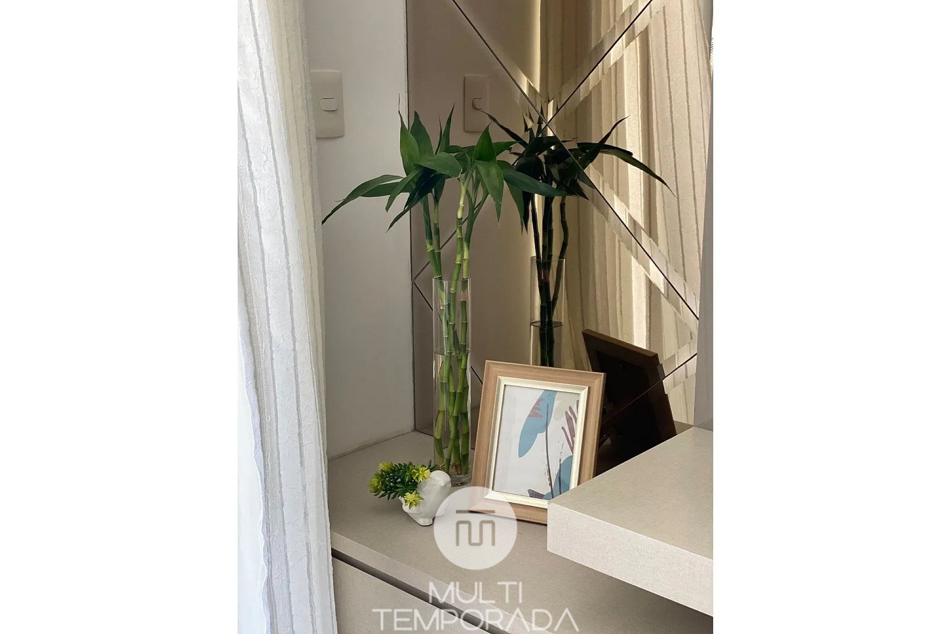 There are 70 square meters with a balcony with barbecue, two air-conditioned rooms, one suite, kitchen and living room integrated with split air conditioning as well. The kitchen is equipped with a stove, oven, refrigerator, microwave, coffee maker, sandwich maker and all the necessary utensils to make a good meal. The air-conditioned room has a Smart TV. We have Wi-Fi in the apartment (110 mega), in addition to the internet offered by the condominium itself, bed linen and complete bathroom, iron, hairdryer, washing machine and dryer.