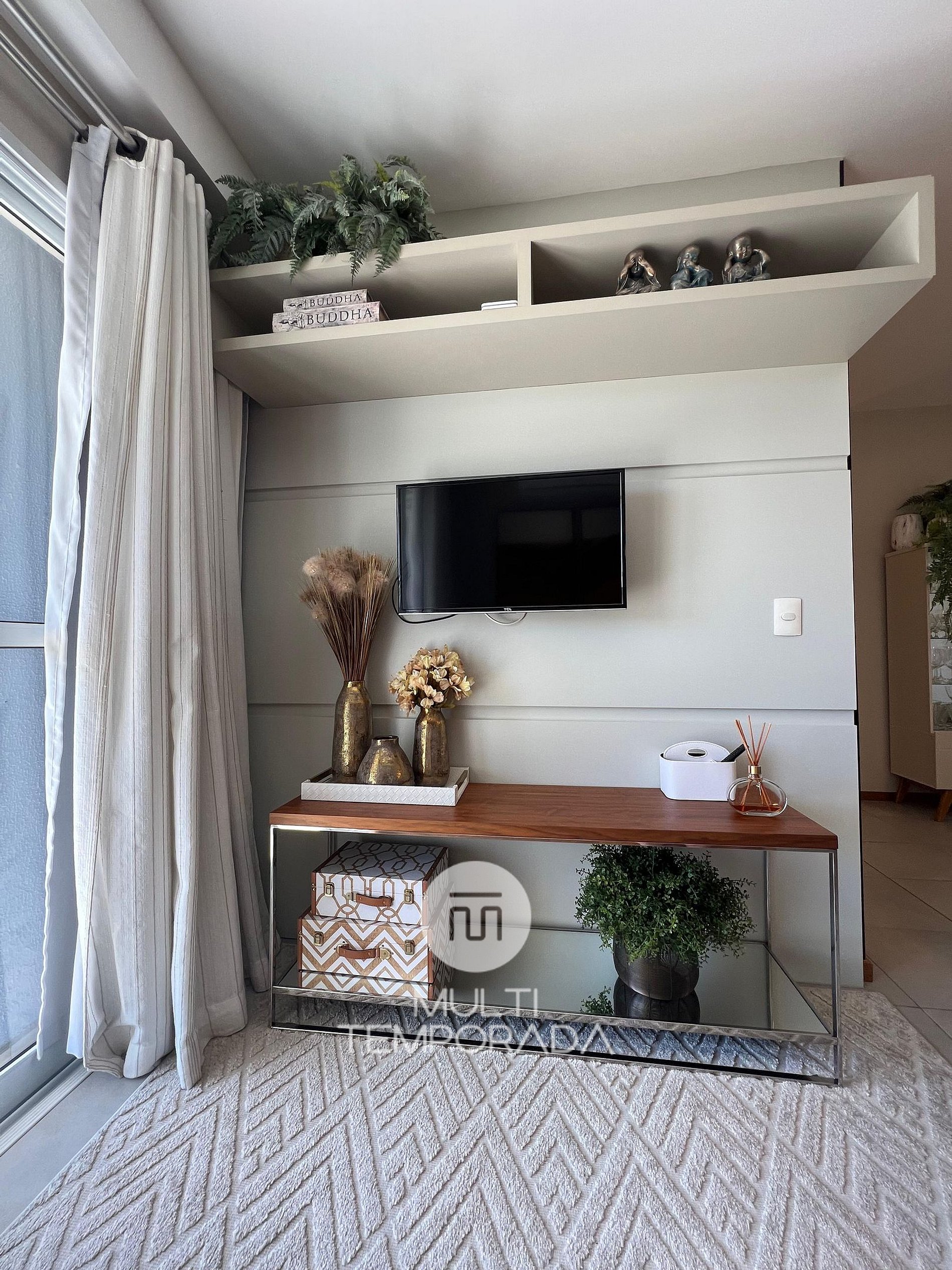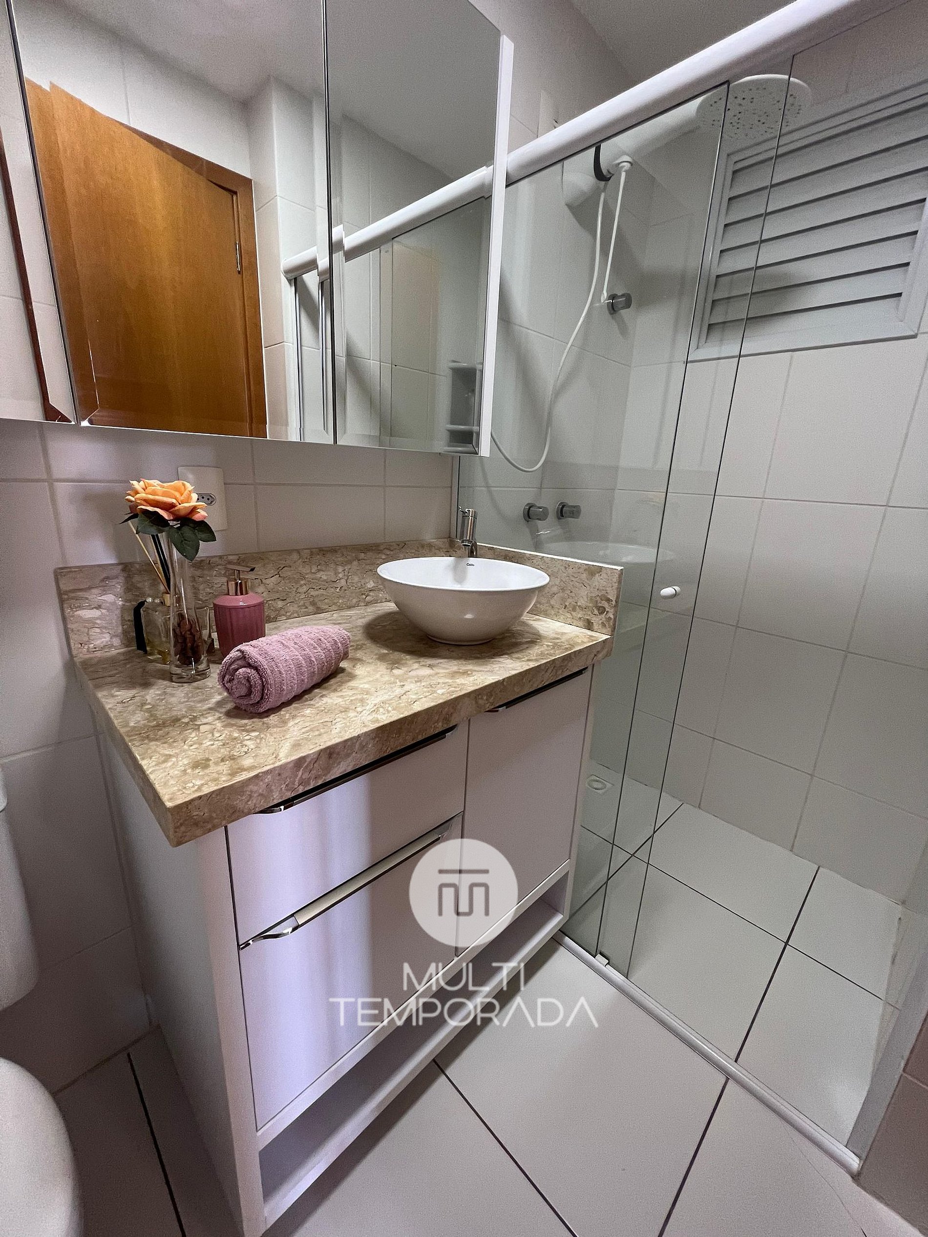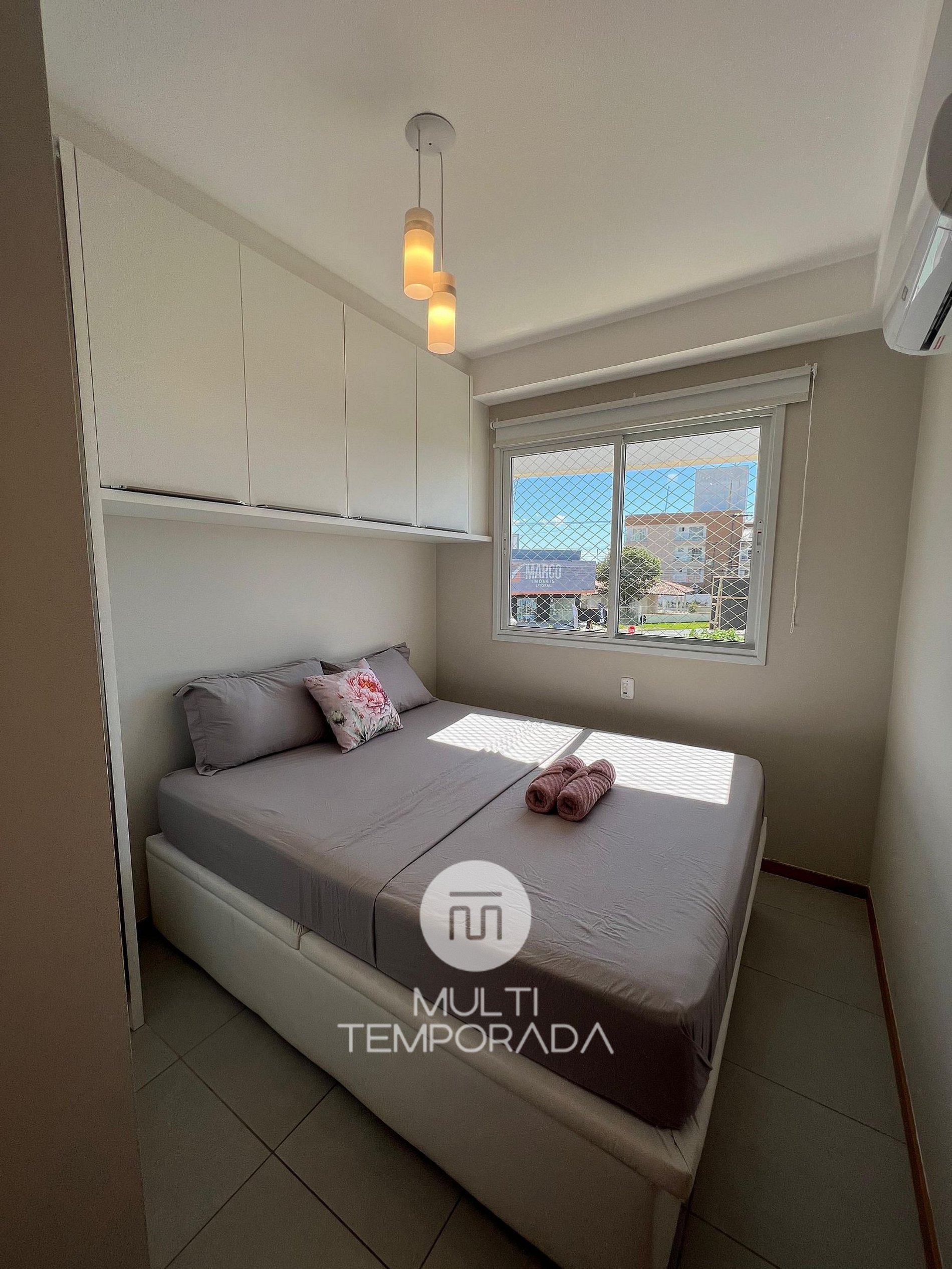 The apartment offers 70 square meters with a balcony and barbecue grill, a suite with air conditioning, King Bed and Smart TV, a bedroom with a Queen Bed and air conditioning, and an integrated kitchen and living room with split air conditioning as well. The kitchen is equipped with a stove, oven, refrigerator with freezer, microwave, blender, sandwich maker, thermos, kettle and strainer, pressure cooker, and all the utensils needed for a good meal. The air-conditioned living room has a 42" Smart TV. Wi-Fi is available in the apartment, as well as the internet provided by the condominium itself. Full bed and bath linen sets, iron, hair dryer, and washing machine are provided.