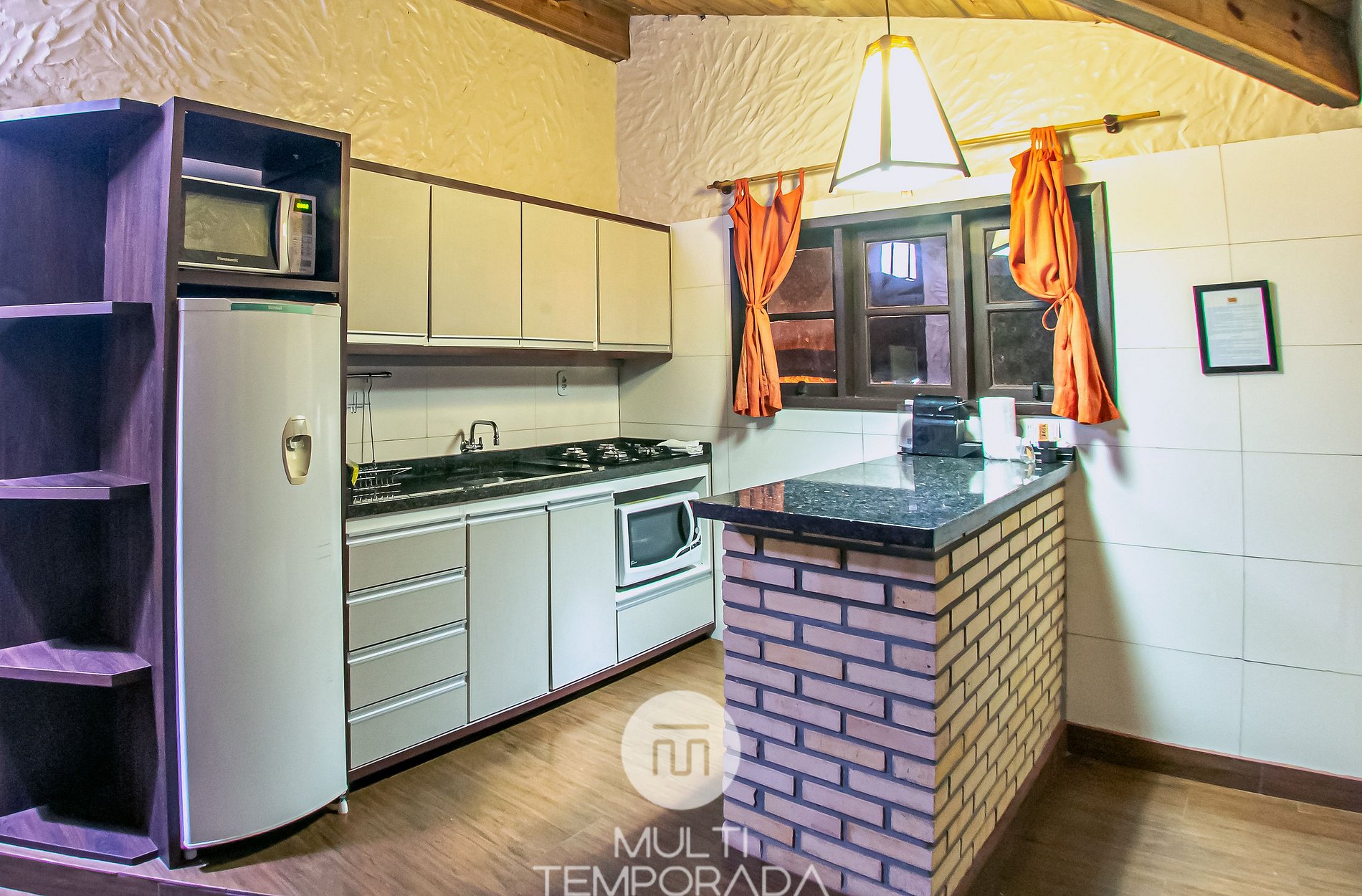 Bungalô 2, has 45², has 1 bedroom, living room, full kitchen and balcony with barbecue, ensuring greater comfort and well-being for guests;