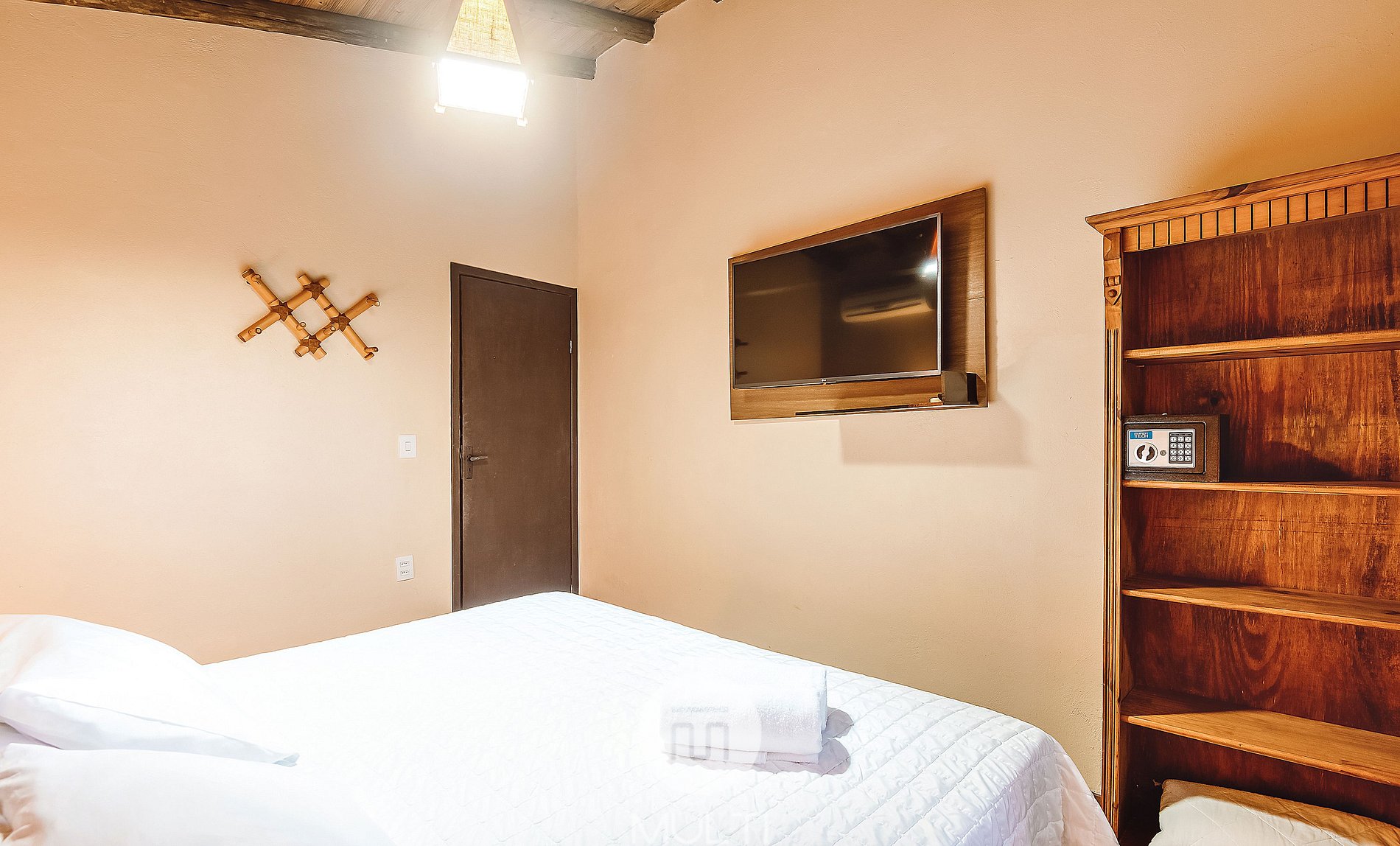 Bedroom: Queen-size bed + 2 single Pillot beds (drawer format), 32 Smart TV with pay-per-view channels + Hot and Cold Air Conditioning;