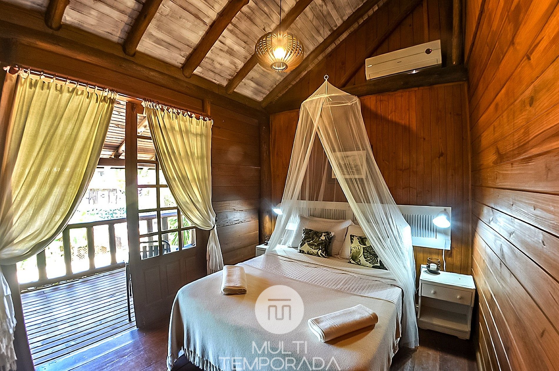 The Deluxe House with Garden View, located on the ground floor, has 50m² and 2 floors. It has 2 bedrooms, air conditioning, 32'' Smart TV, full kitchen, living room, ground floor balcony and large bathroom on the ground floor with electric shower, ensuring greater convenience and well-being for guests;