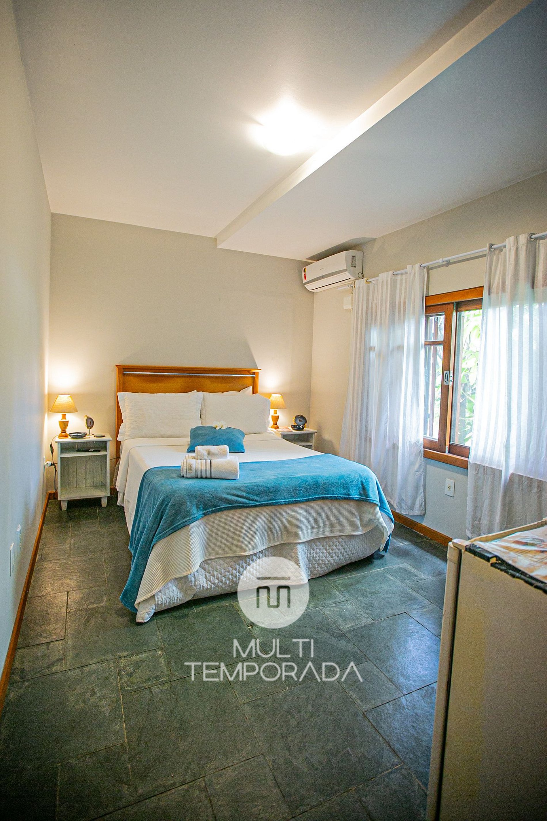 The Ribeirão da Ilha Suite has 16m²: Double bed, 23'' TV with pay-per-view channels + Hot and Cold Air Conditioning;