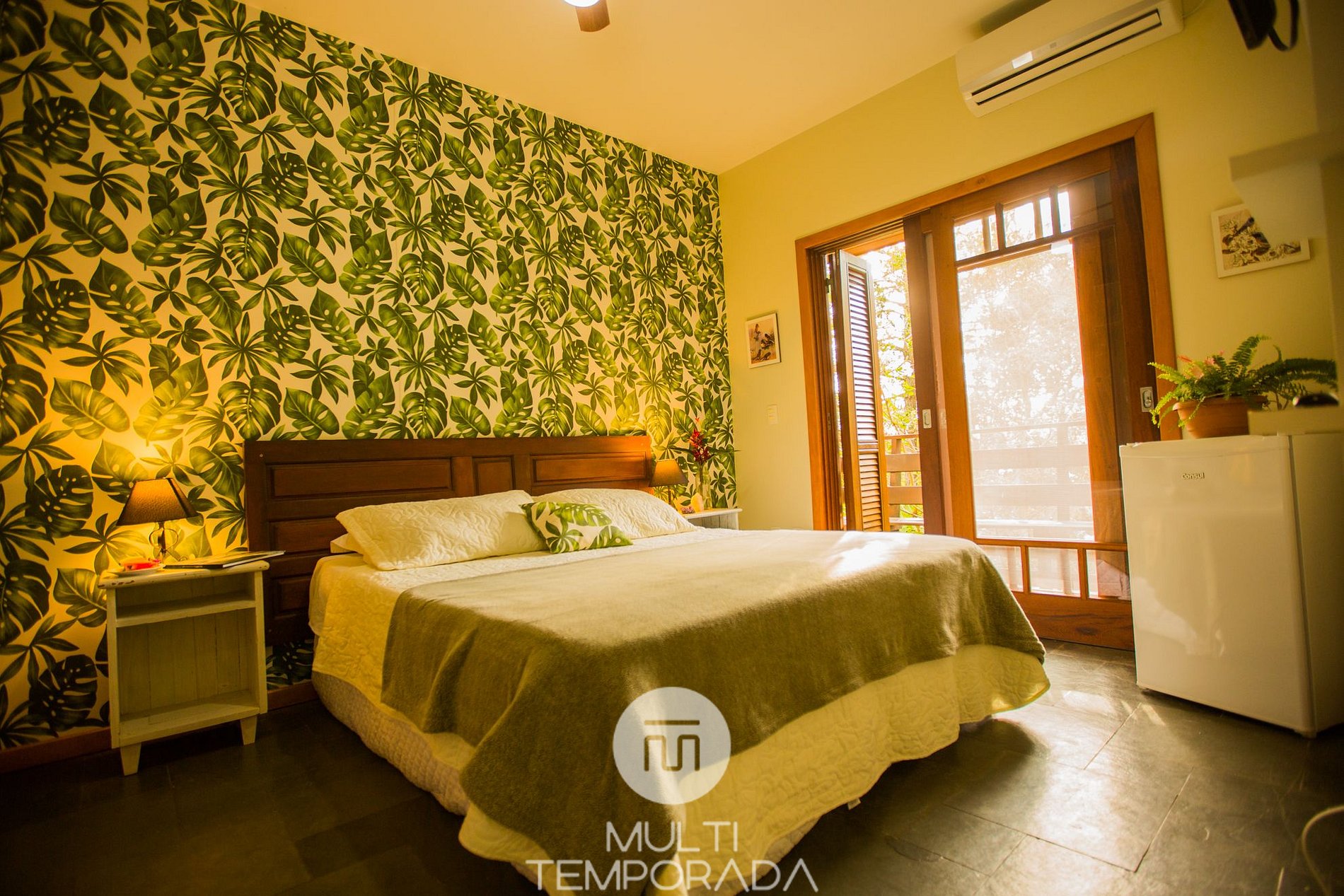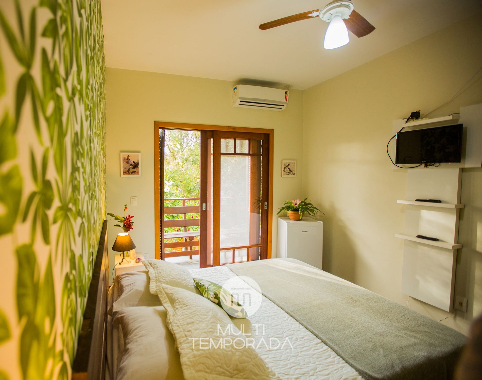 The Praia da Solidão Suite has 16m²: Queen-size bed, 23'' TV with pay-per-view channels + hot and cold air conditioning and upper balcony with views of the garden, mountains and native forest;