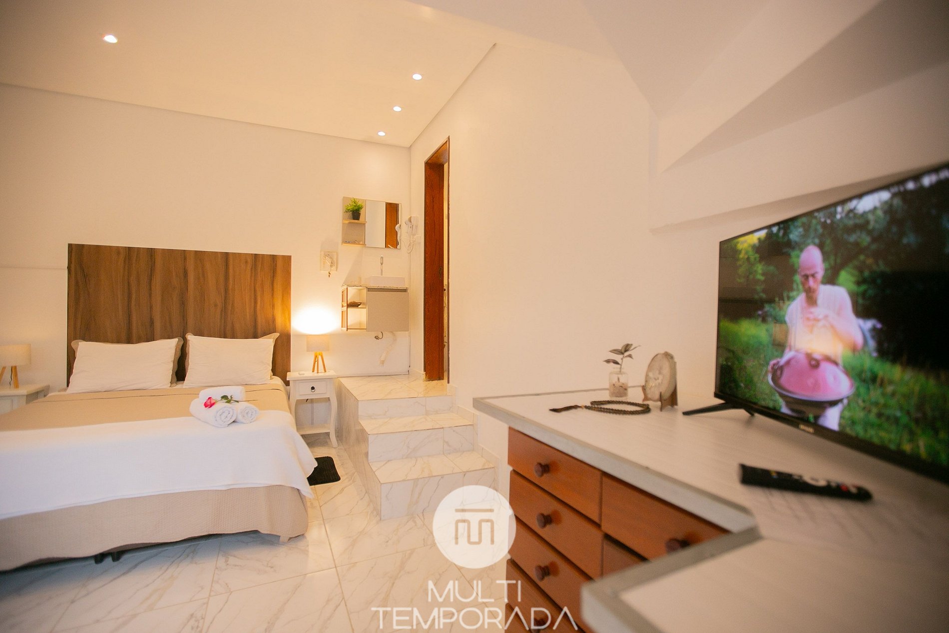 Multitemporada presents Bollté Praia Boutique Pousada, located in the Campeche neighborhood of Florianópolis. A cozy and pleasant space, perfect for couples and families seeking practicality and high-quality accommodation. The property stands out for its location and comfort, being 200m from Campeche Beach and 1.5km from Campeche Island. Our space includes a swimming pool, a kitchen with à la carte dinners, breakfast, a gourmet area with barbecue, a garden, and a modern, beach-themed décor.