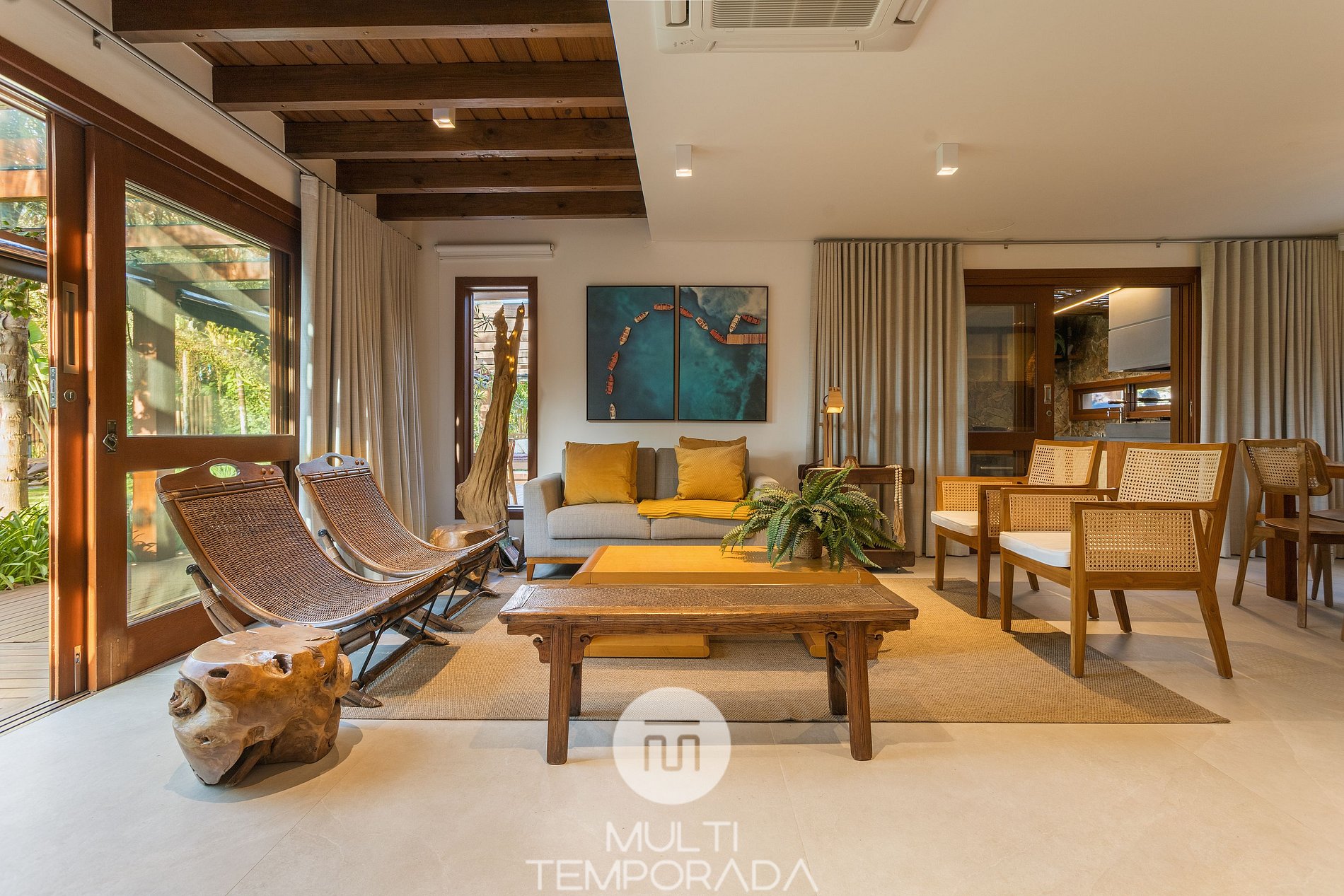 Multitemporada presents Santi Sabai Ibira, a haven of tranquility and sophistication in Barra de Ibiraquera, SC, in the Maranata III condominium. On the banks of the stunning Ibiraquera Lagoon and just a few steps from the beach, this property offers a unique combination of comfort, elegance and total integration with nature.