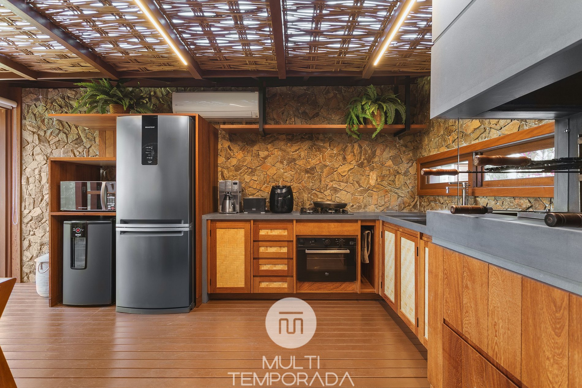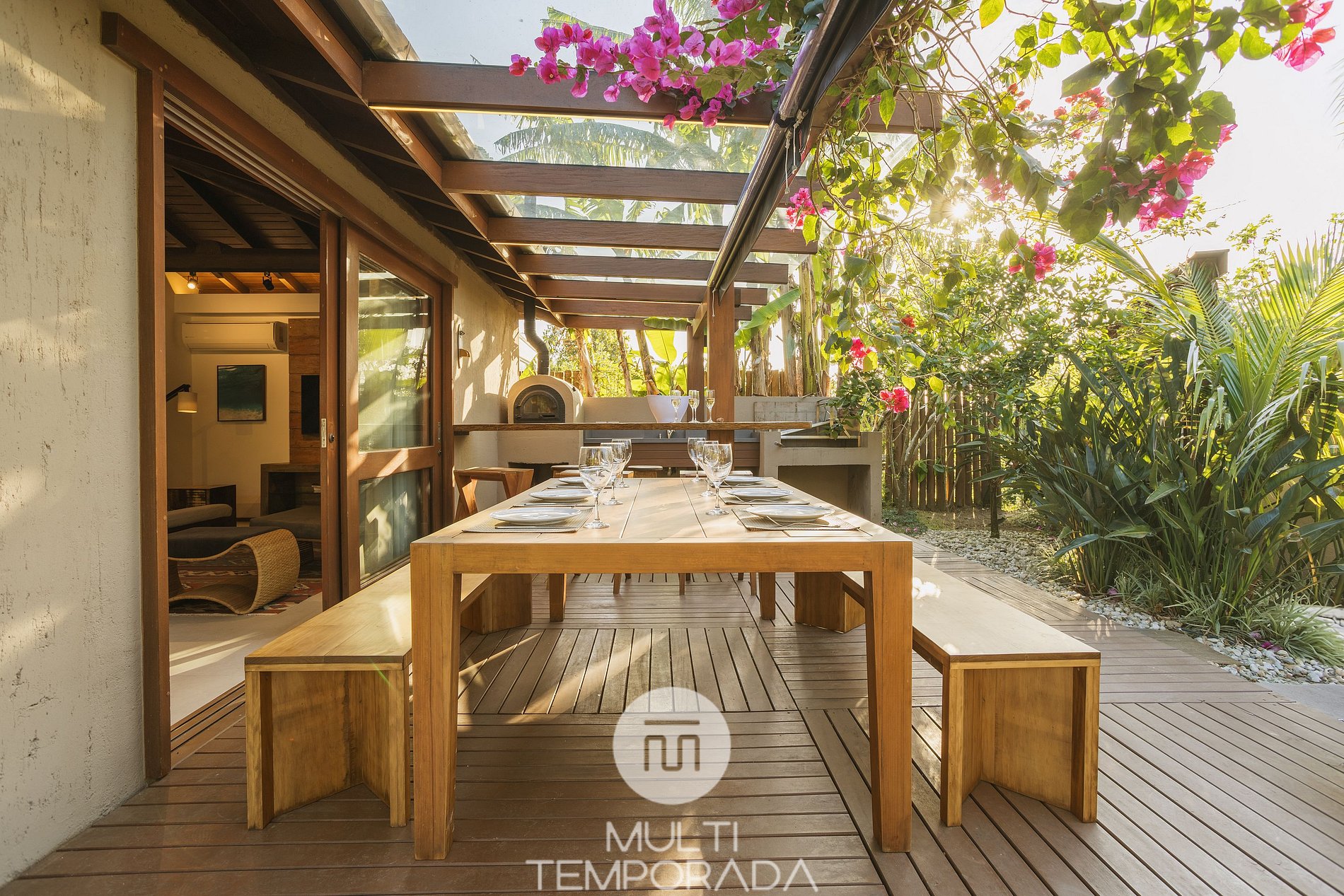With 1,100m² of land, Santi Sabai Ibira offers the ideal space for groups that value privacy and comfort. The property consists of 3 houses connected by a wooden deck covered by a pergola, providing an atmosphere that integrates the spaces with nature.