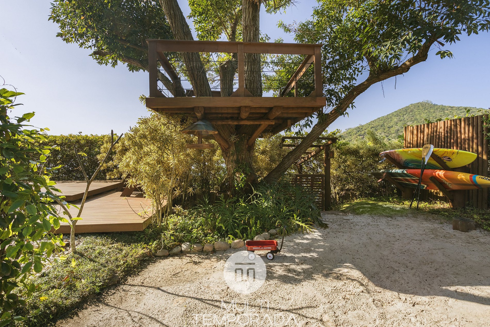 If you prefer to slow down, enjoy the garden, carefully designed to promote well-being, or work out in the outdoor area with a bar, parallel bars and abdominal board. To end the day, enjoy starry nights around the fireplace or climb to the lookout point in the tree house to enjoy the spectacular view of Ibiraquera Lagoon.