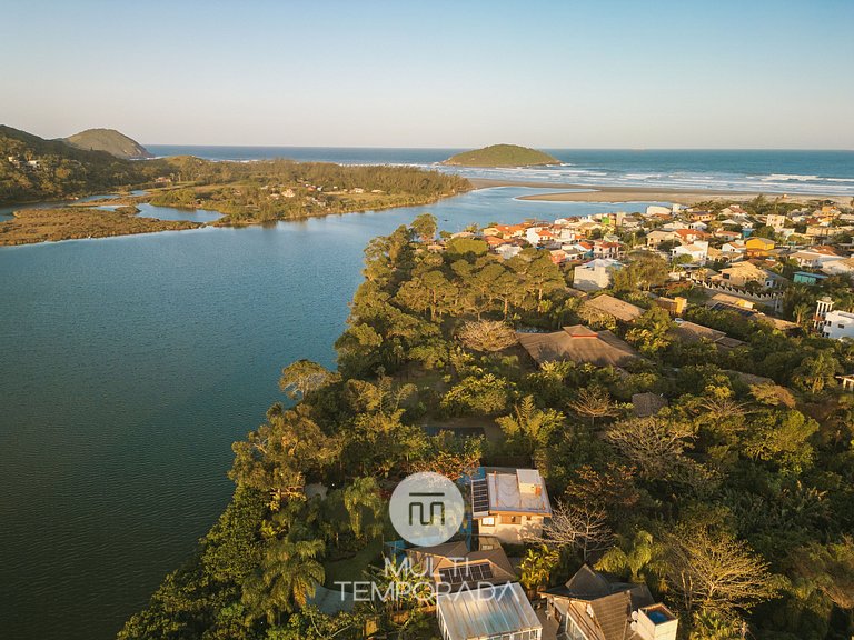 Multitemporada presents Santi Sabai Ibira, a haven of tranquility and sophistication in Barra de Ibiraquera, SC, in the Maranata III condominium. On the banks of the stunning Ibiraquera Lagoon and just a few steps from the beach, this property offers a unique combination of comfort, elegance and total integration with nature.