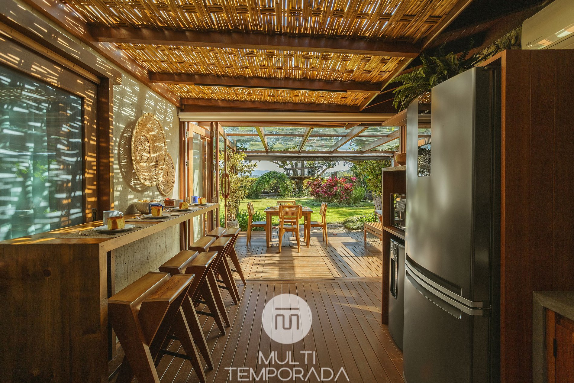 With 1,100m² of land, Santi Sabai Ibira offers the ideal space for groups that value privacy and comfort. The property consists of 3 houses connected by a wooden deck covered by a pergola, providing an atmosphere that integrates the spaces with nature.
