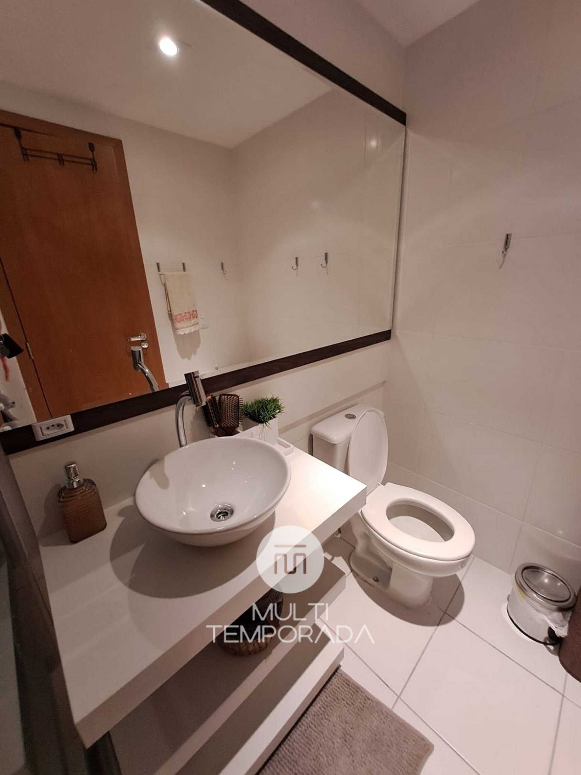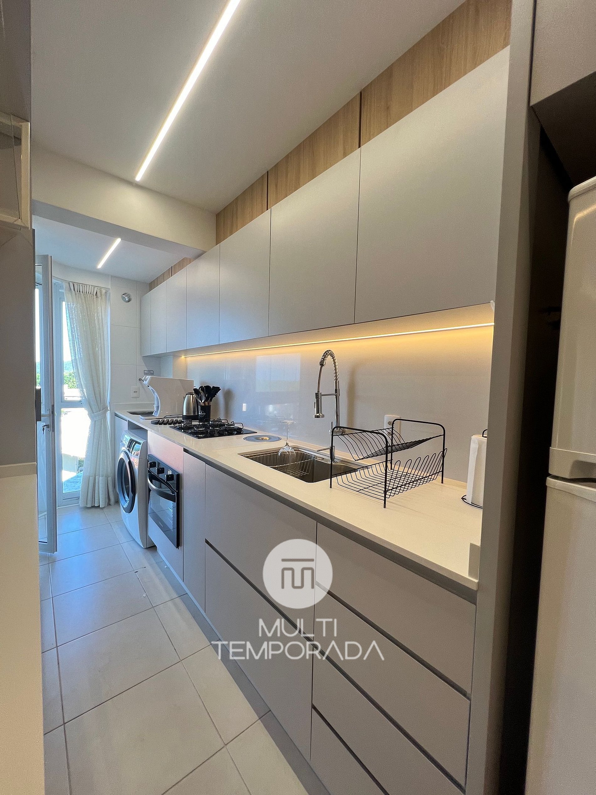 It has 70 square meters with a balcony with a barbecue and sea view, two air-conditioned bedrooms with sea view, one of which is a suite, and an integrated kitchen and air-conditioned living room. The kitchen is equipped with a stove, oven, refrigerator, microwave, sandwich maker, electric kettle, blender and all the utensils needed to make a good meal.