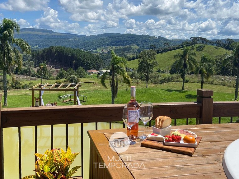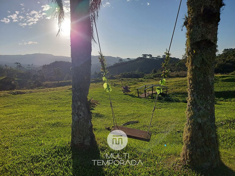 Indoor environment of 80 square meters, barbecue and secure parking. Full kitchen with stove, oven, refrigerator, microwave, toaster, coffee maker and basic kitchen items, all top-notch. In addition, it has a living room and dining room, with an excellent internal fireplace. In addition, we have quality WI-FI internet for Home-Office, 43 '' TV, SKY Cable Channels, bed and bath linen, immense land full of green and a spacious Deck (18m²) with an incredible view to the Morro da Boa Vista, as well as Pôr-do-Sol. All this for the best comfort of our guests, to make them feel at home, in a perfect refuge to rest and discover the best of Serra Catarinense.