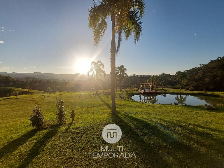 The infrastructure of the place offers a space of 3 hectares (30,000m²), weir with ducks and fish for fishing, animals in the pasture, outdoor floor fire and internal fireplace, oil heater for the coldest days, excellent for your leisure with the greatest comfort.