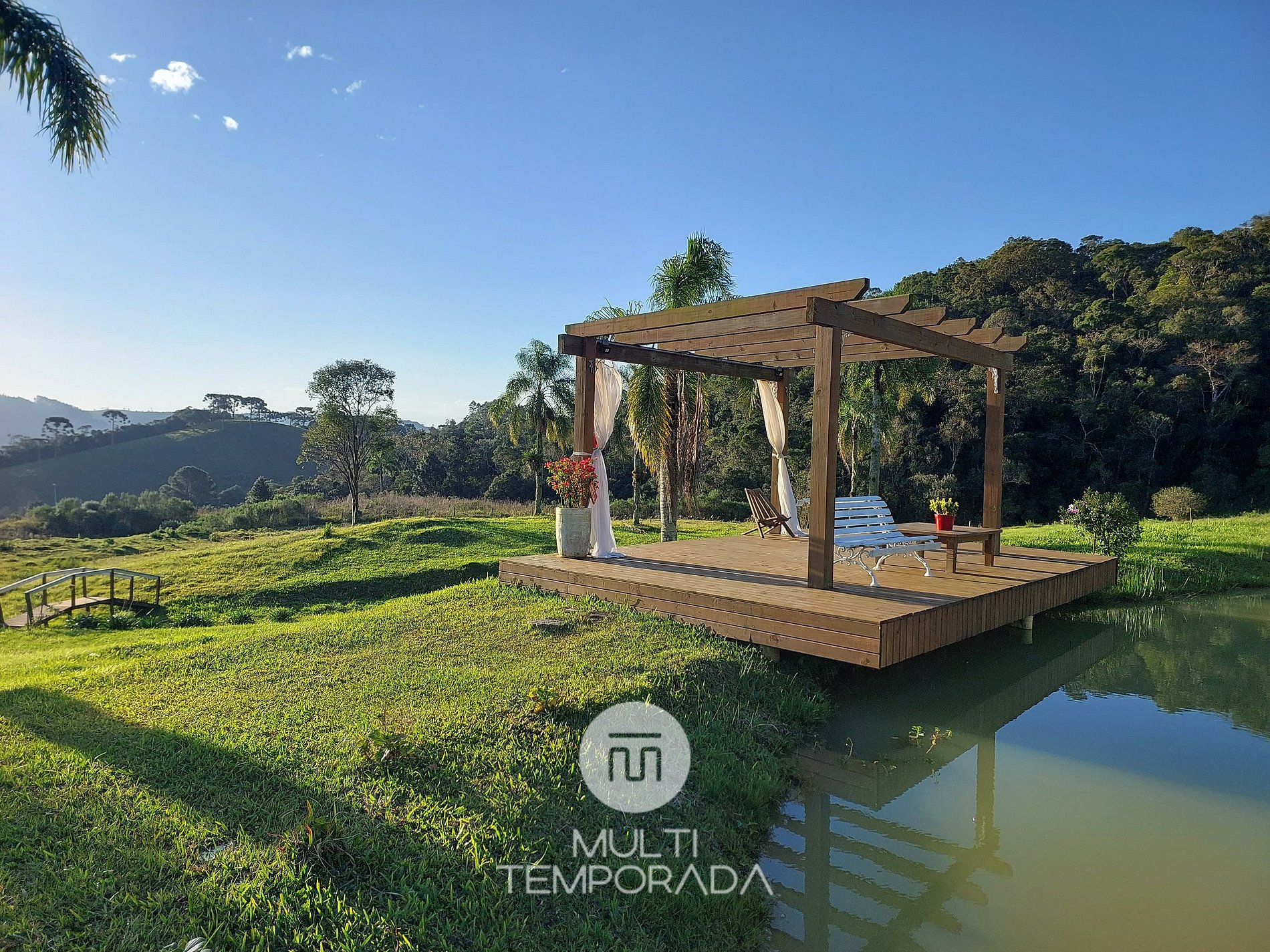 The infrastructure of the place offers a space of 3 hectares (30,000m²), weir with ducks and fish for fishing, animals in the pasture, outdoor floor fire and internal fireplace, oil heater for the coldest days, excellent for your leisure with the greatest comfort.