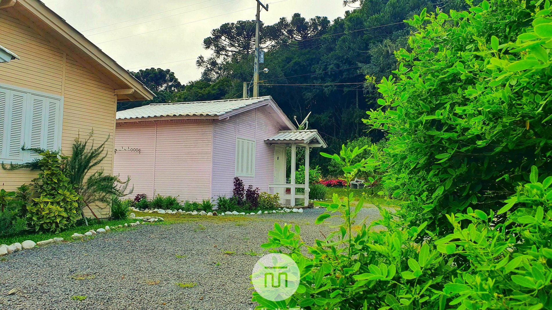 Chalé Rosa has 20m² of built area. It has 1 bedroom, 1 complete private bathroom, anteroom, garden and ample parking.