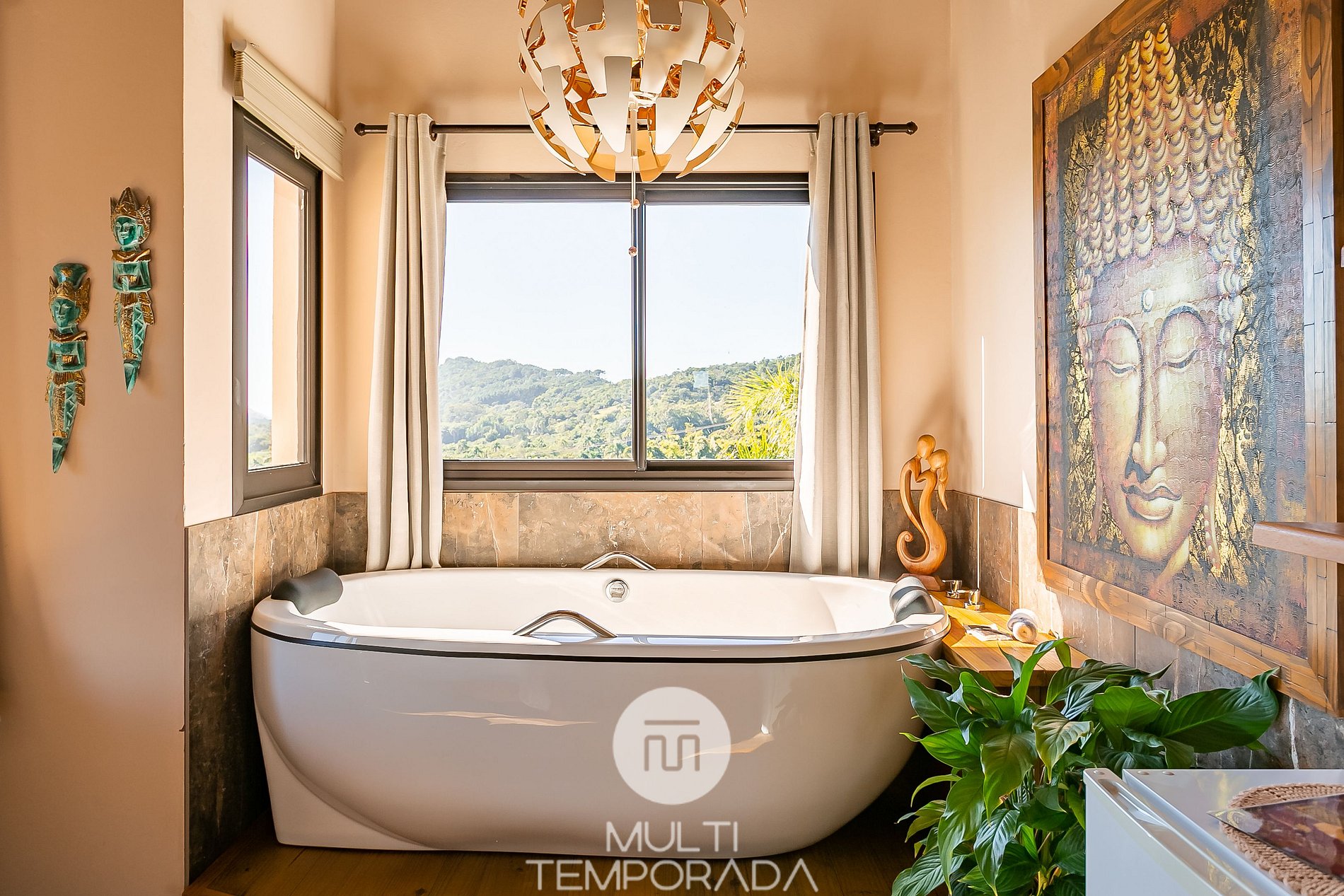 Zen atmosphere, inspired by Buddhism and Hinduism, with a beautiful garden perfect for relaxing, panoramic terrace with a privileged view of the sunset and decorative items imported from Indonesia!