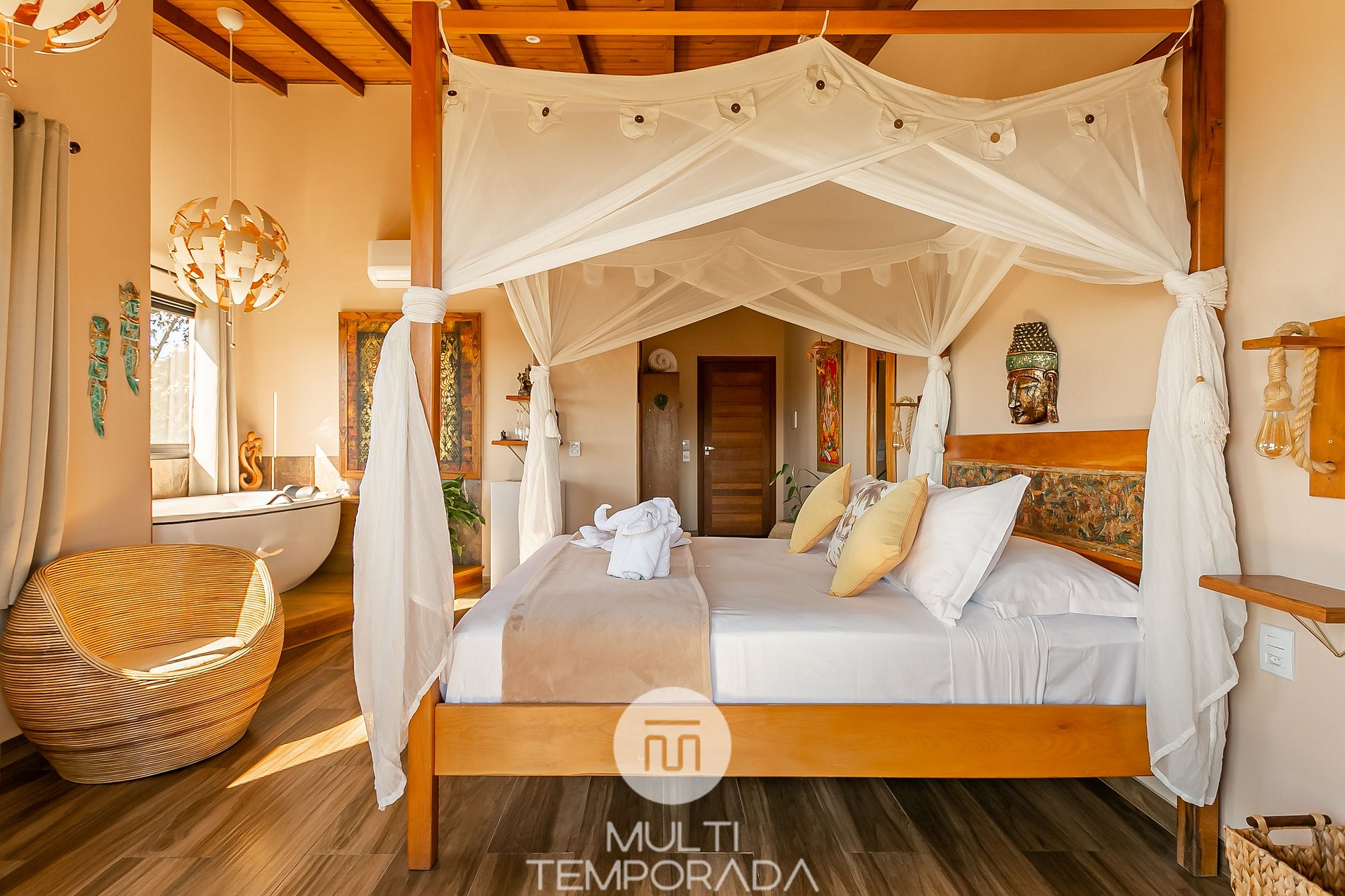 In addition, we have quality WI-FI internet, bed and bath hotel category linen and hairdryer. All this for the greater comfort of our guests, to make them feel at home, in a perfect refuge to rest and discover the best of Praia do Rosa.
