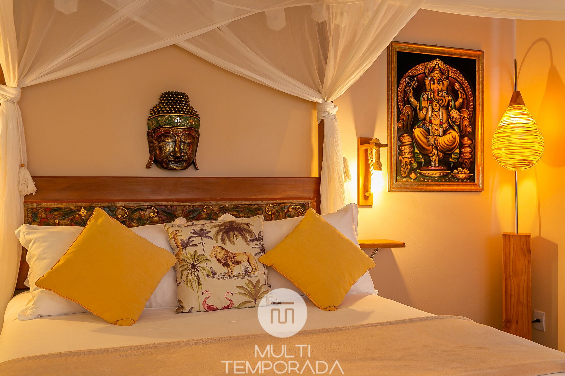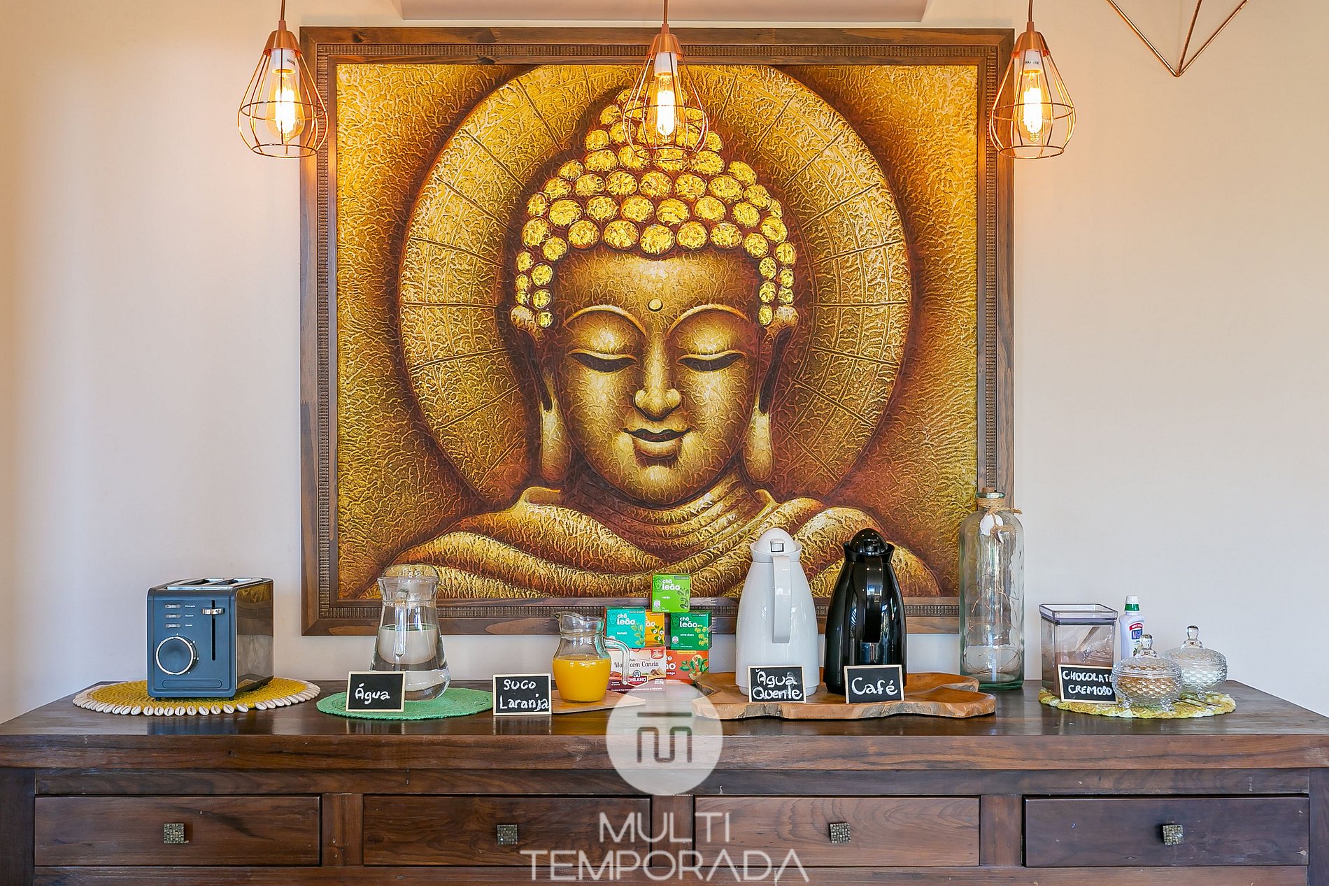Zen atmosphere, inspired by Buddhism and Hinduism, with a beautiful garden perfect for relaxing, panoramic terrace with a privileged view of the sunset and decorative items imported from Indonesia!