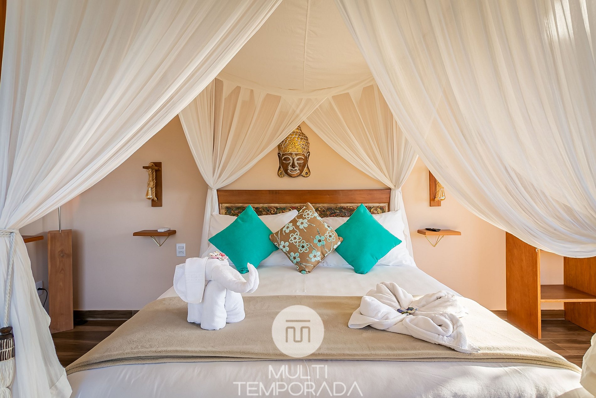 Shiva Boutique Hotel, located in Praia do Rosa - Imbituba/SC. A cozy and pleasant space for couples looking for comfort and a unique experience just a few meters from Centrinho do Rosa. Our space has a structure surrounded by nature, with a Hindu concept totally relevant to the beach region with decorations everywhere. It has a sophisticated decoration, with imported pieces, exclusive amenities, room service, suites with access card and a delicious breakfast.