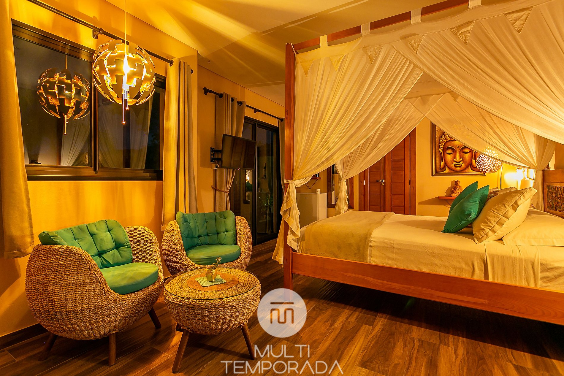 Zen atmosphere, inspired by Buddhism and Hinduism, with a beautiful garden perfect for relaxing, panoramic terrace with a privileged view of the sunset and decorative items imported from Indonesia!