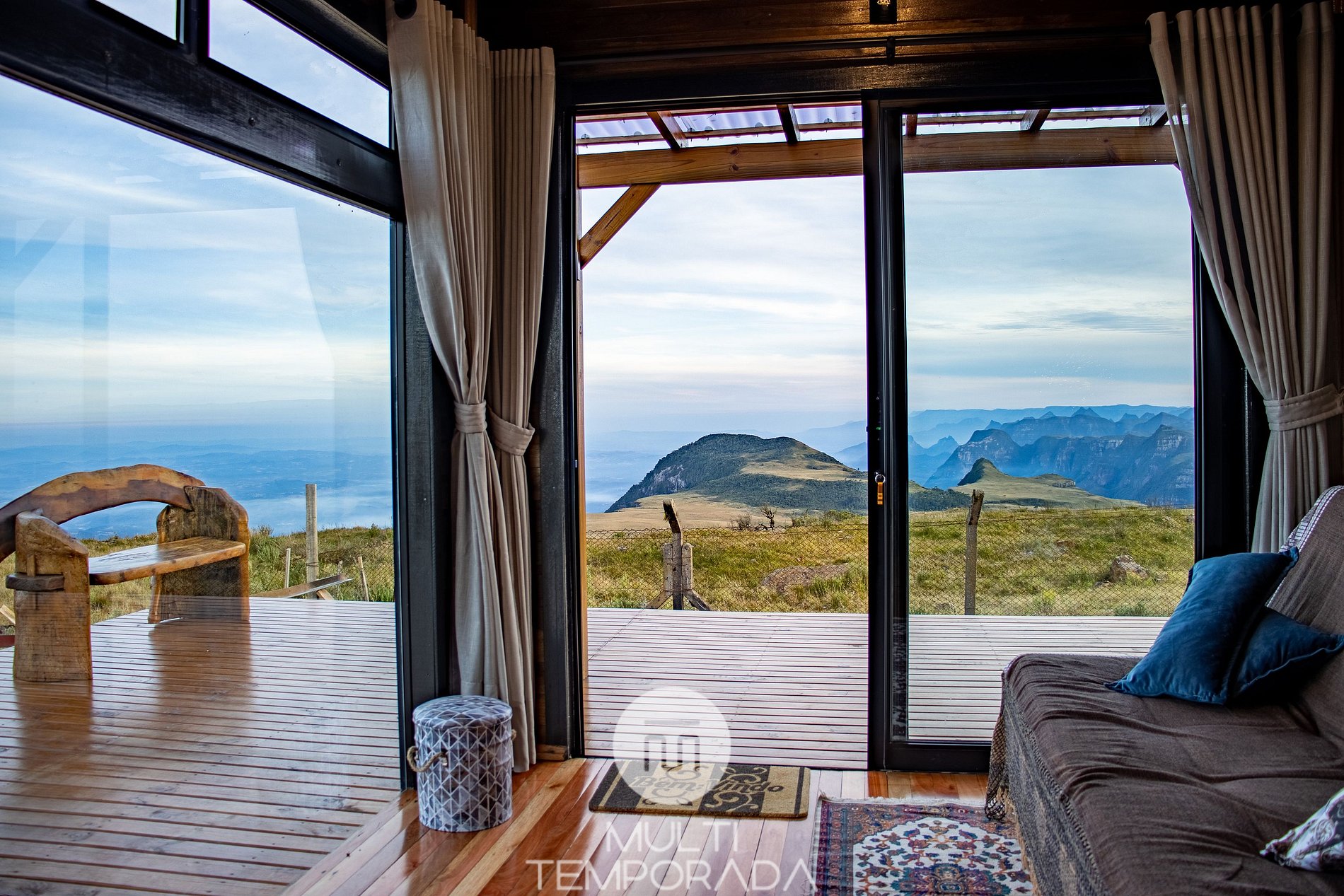 Multitemporada presents a true mountain adventure experience, belonging to the city of Urubici/SC, a cozy and pleasant space, perfect for couples and groups of up to 12 people. The property stands out for its location, being in a mountainous region (serra), pleasant climate and surrounded by nature. We offer a guide during your stay, sightseeing, transfer (extra), fully sustainable property with solar energy and much more.