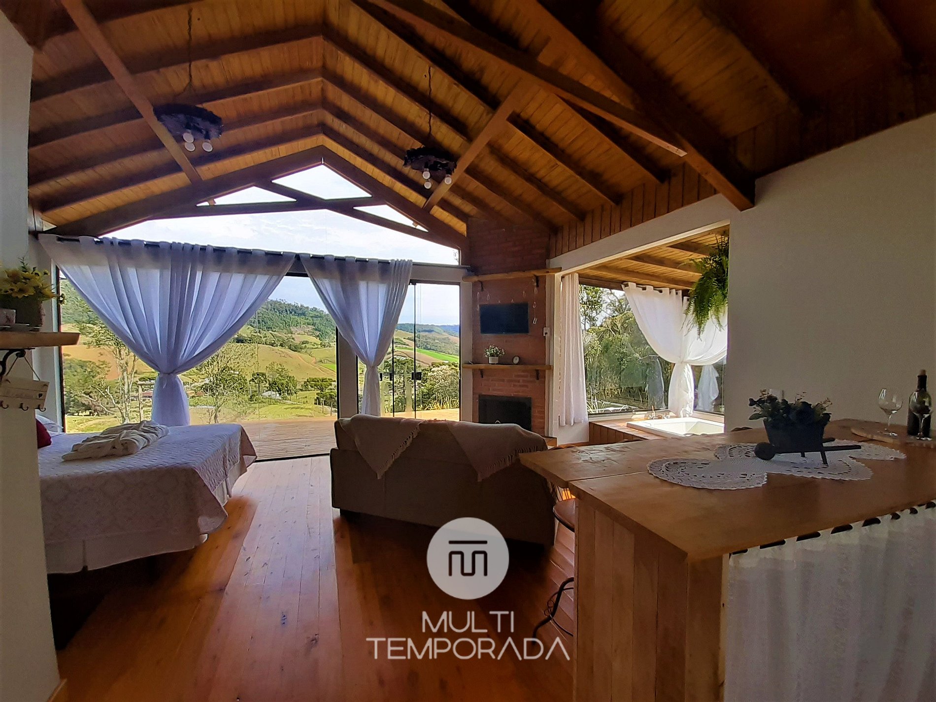 The Multitemporada presents Chalé Caminho do Sol 1, belonging to the municipality of Rancho Queimado/SC, a cozy and pleasant space, perfect for couples and families. The property stands out for its location and view, being in a mountainous region (mountain), pleasant climate and surrounded by nature.