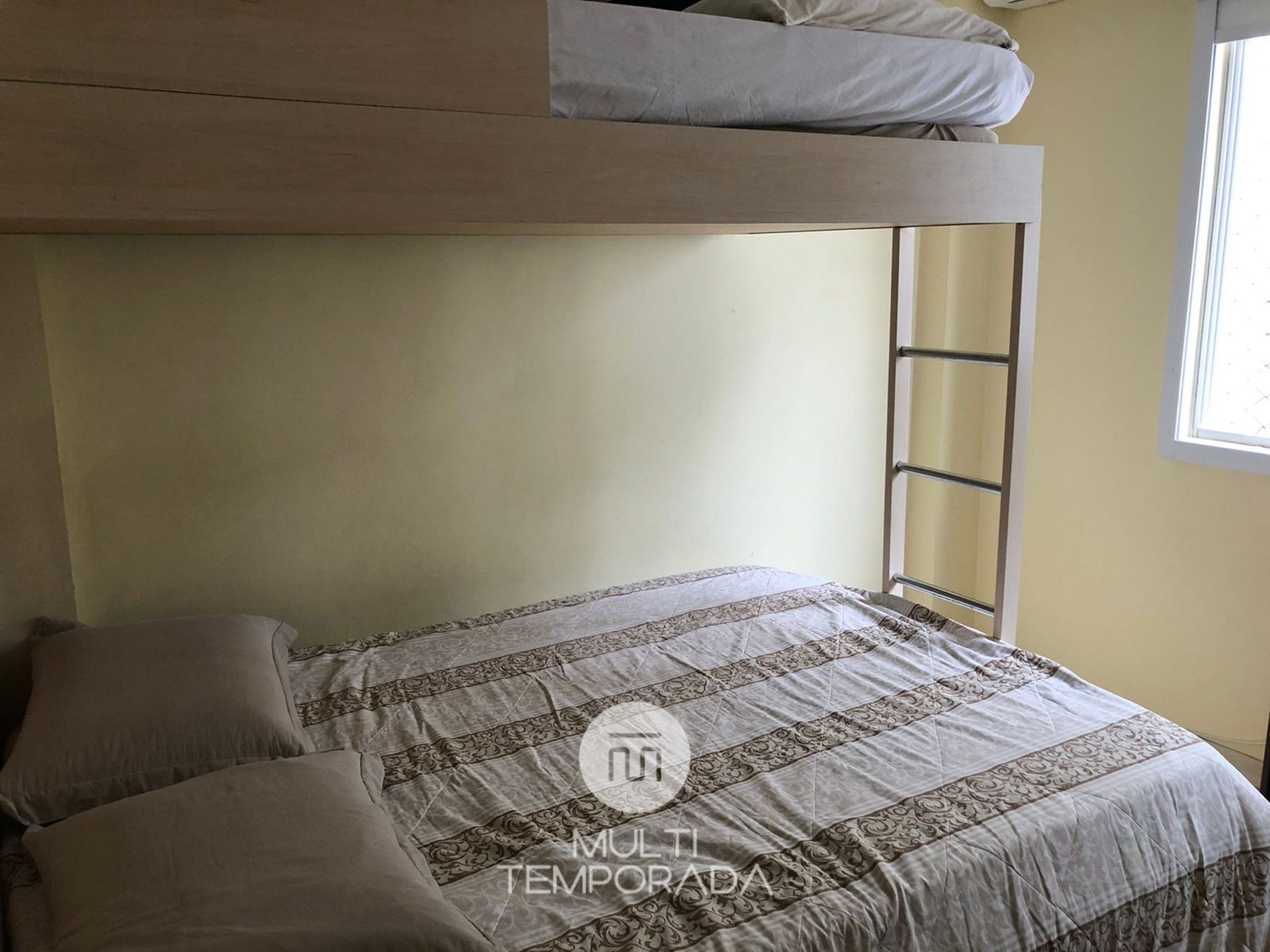 Bedroom: Double bed, single mattress, bunk bed for one person and air conditioning;