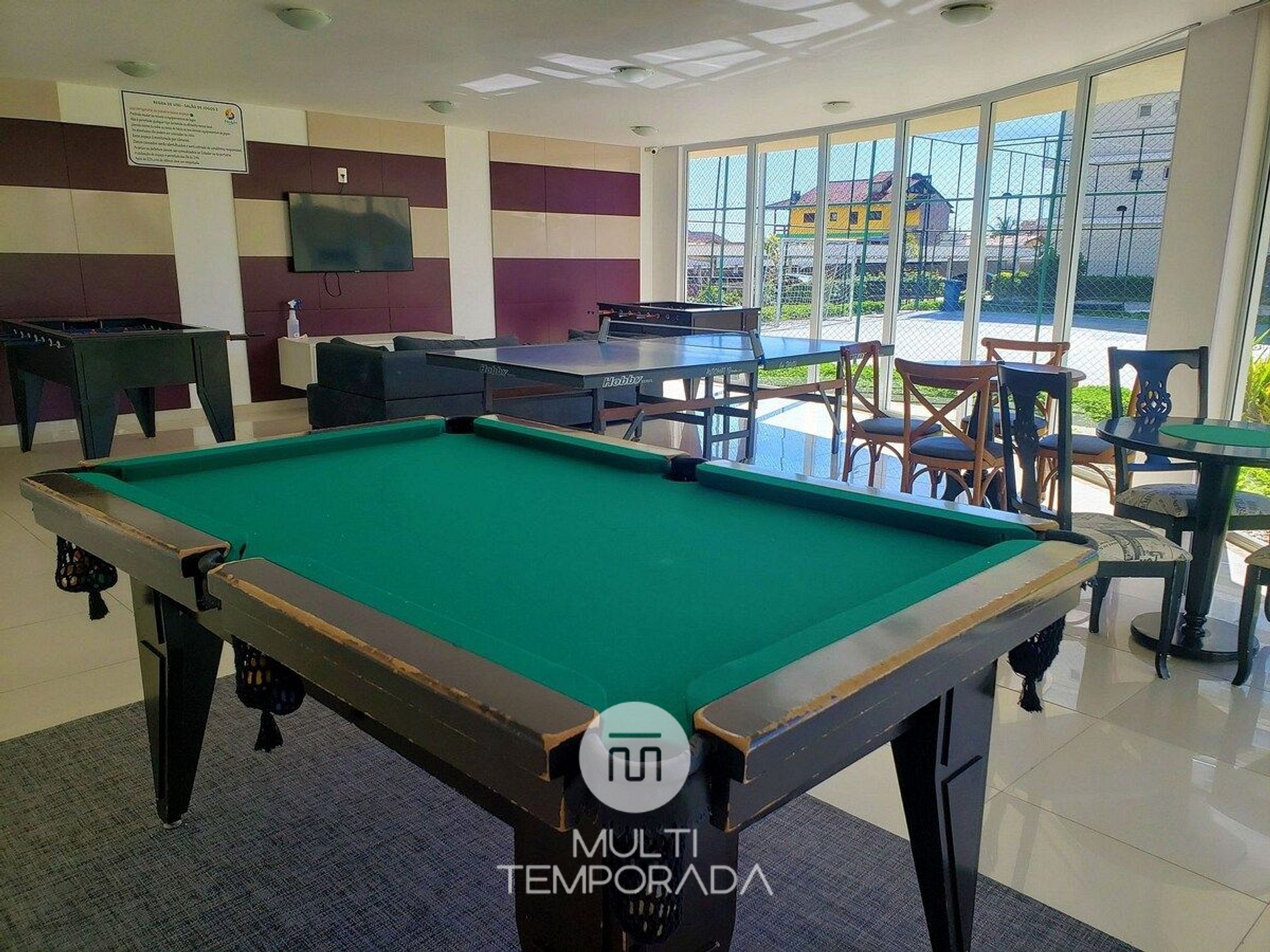 Tv do salão de jogos não estava funcionando. A piscina é muito rasa.