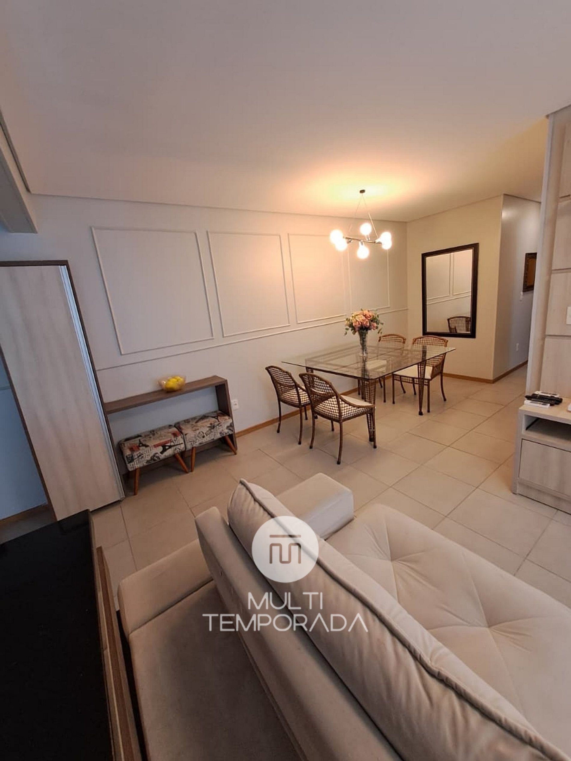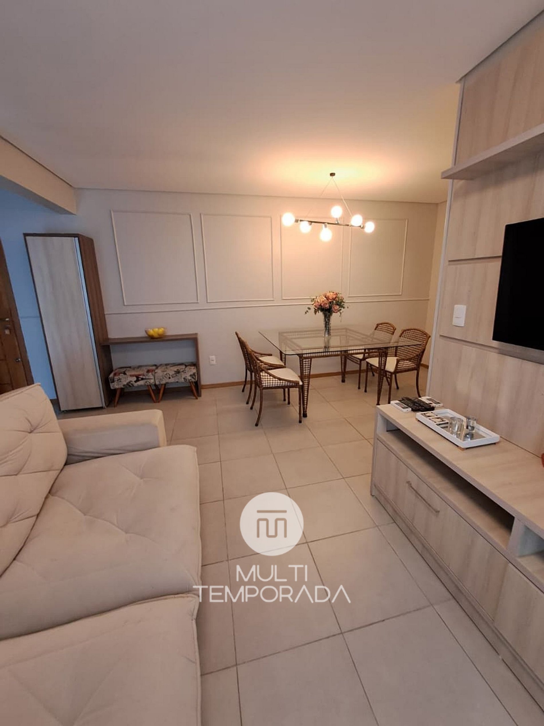 Apartment in a gated community with 24-hour security and surveillance cameras. 1 parking space. 55" smart TV in the living room, bedroom, and master suite, Netflix installed in all rooms. Bedding configuration: two double beds and two single mattresses.