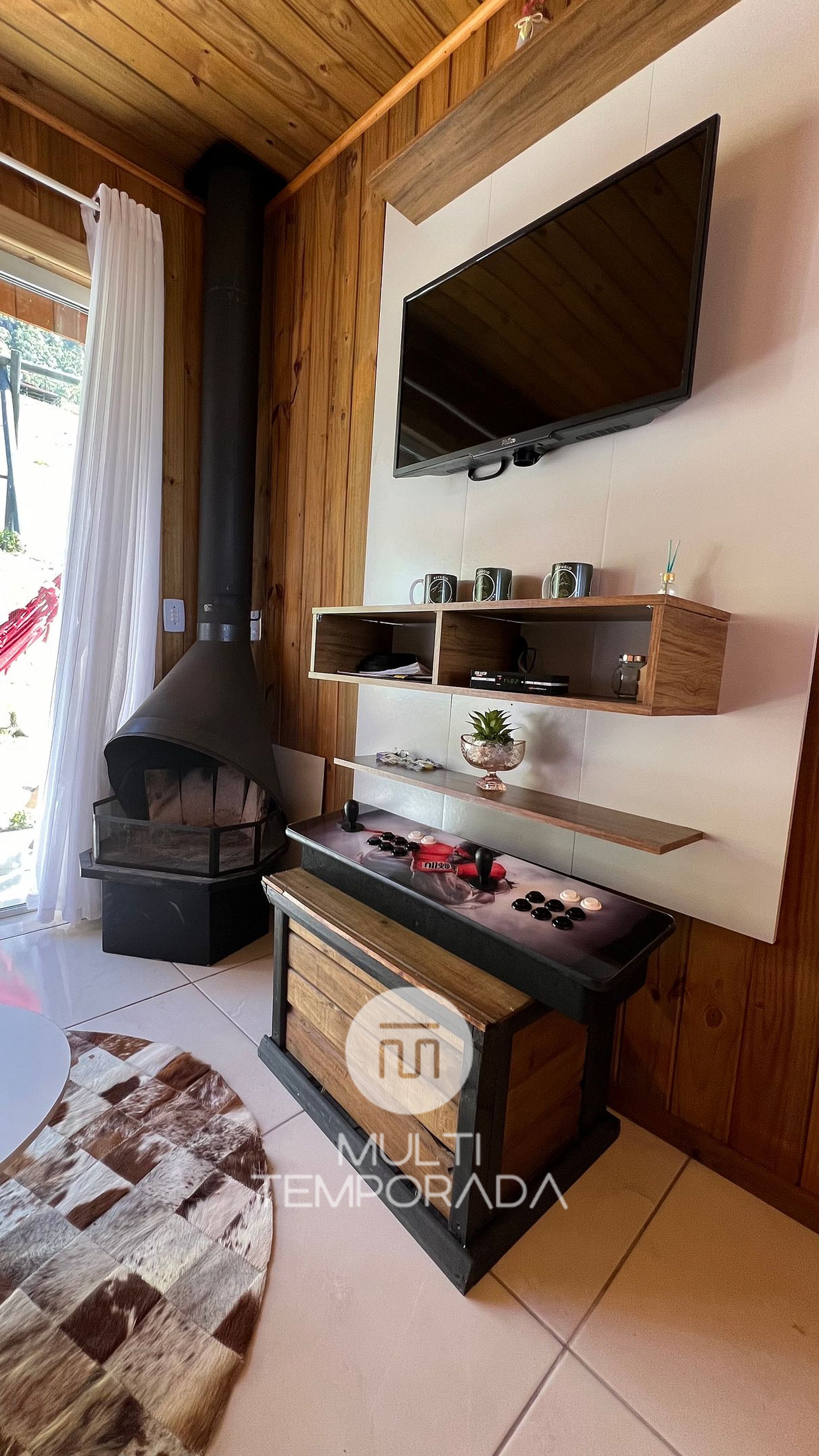 Living room: Additional mattresses (1 double and 2 singles), 32’’ Smart TV and indoor fireplace;