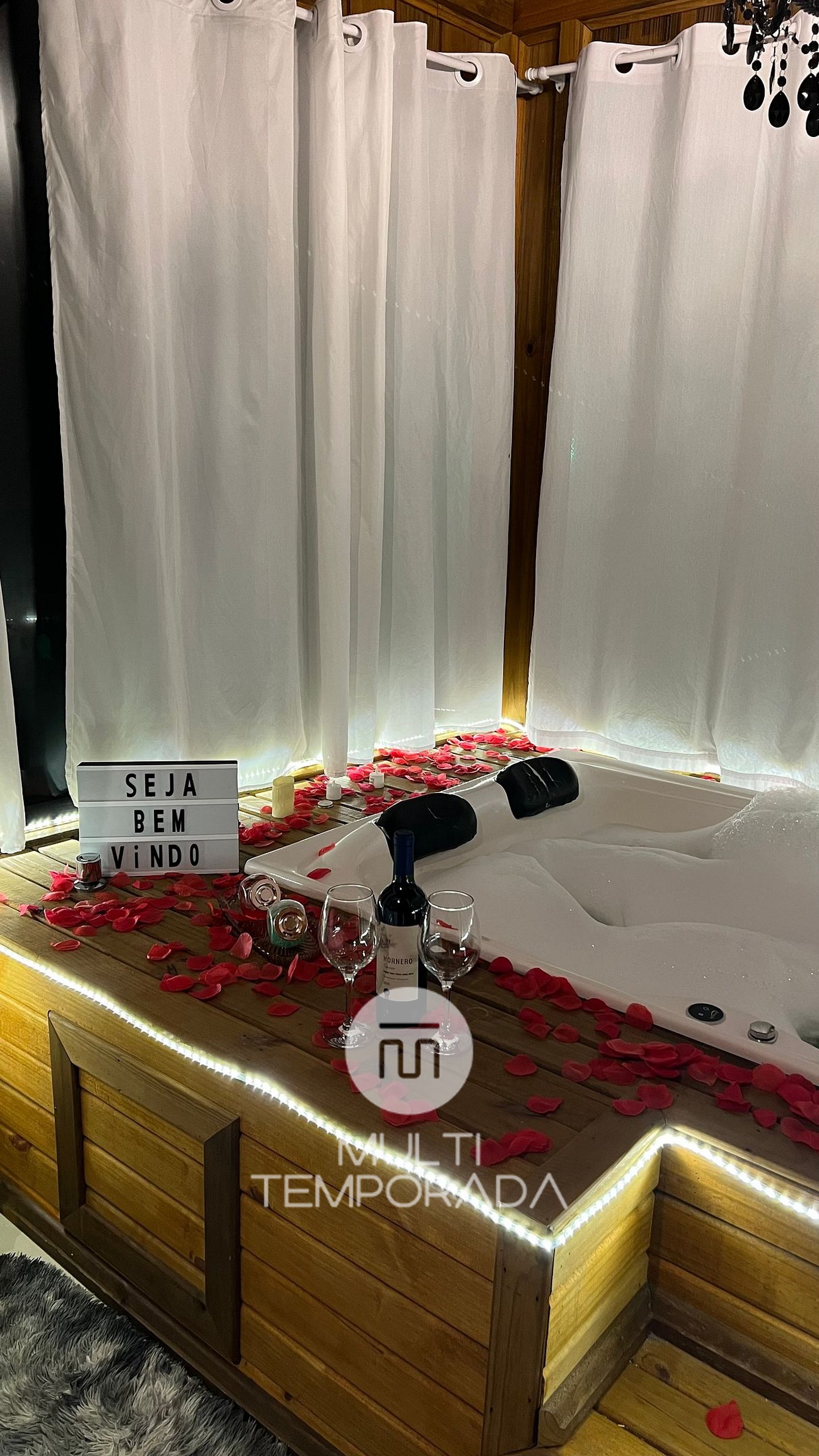 The 56m² internal structure has a full kitchen: hot water on tap, barbecue, stove, electric oven, refrigerator, microwave, crockery and cutlery, basic kitchen items, as well as top-of-the-line appliances: toaster, mixer and a dining table. In addition, we have a beautiful whirlpool bath and chromotherapy, a wine cellar, quality WI-FI internet for home-office, bed linen with blankets and pillows, bath linen with a towel for each guest and two more face towels, iron and a beautiful deck with a view of the mountains in the region. All this for the greater comfort of our guests, so that they feel at home, in a perfect refuge to rest and discover the best that the Serra Catarinense has to offer with extreme security and cordiality from the hosts.