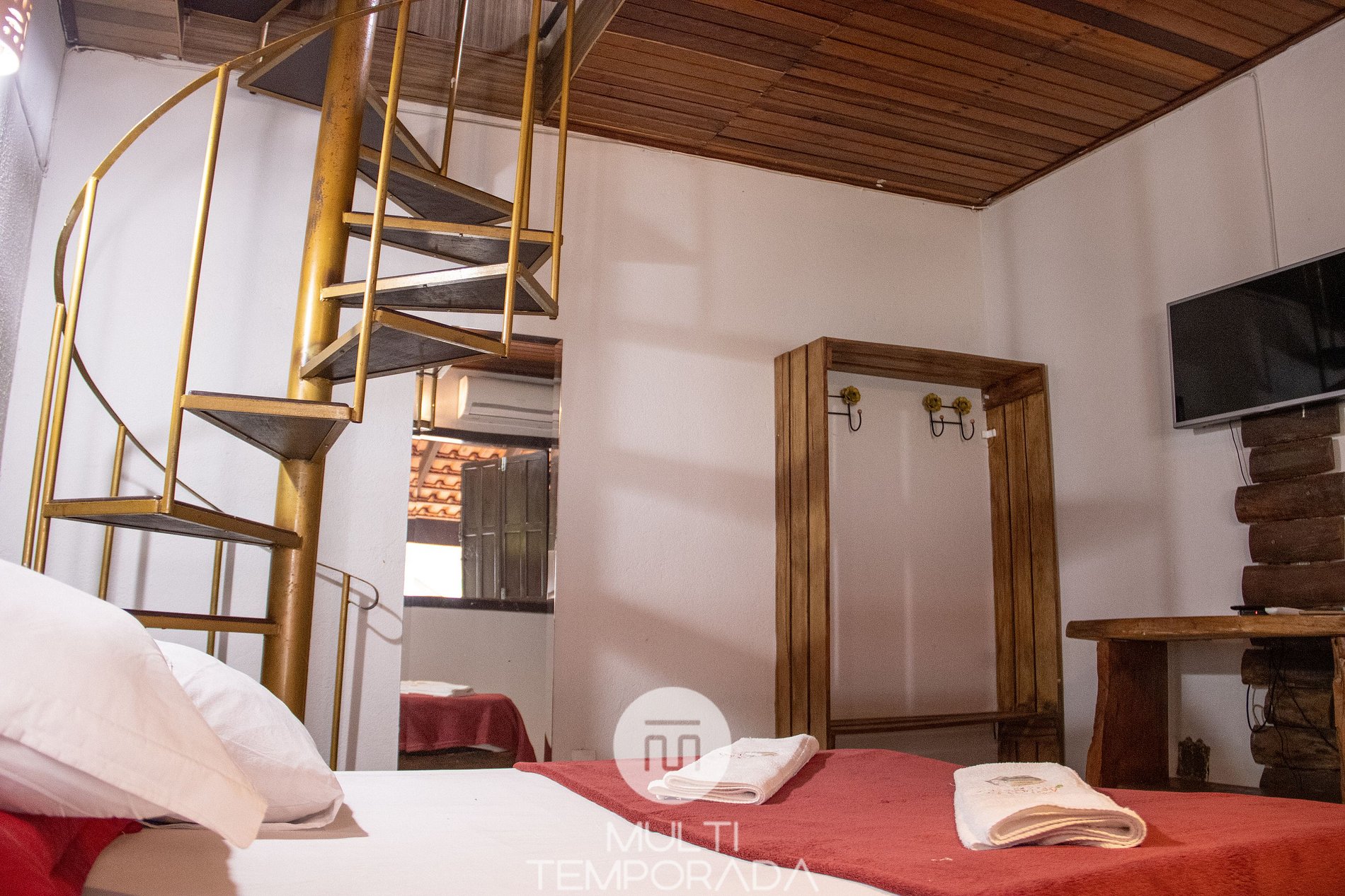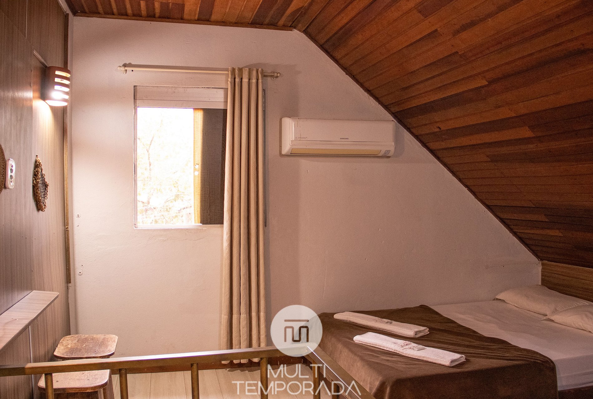 Rustic and Simple Concept: Comfortable space for up to five people with maximum convenience. We have a mezzanine with a double bed and a single bed and a suite with a double bed and 32'' Smart TV, quality WIFI, minibar, air conditioning in the mezzanine and bedroom, swimming pool, full bed linen and bath towels. We include a delicious breakfast and provide a place for you to make your own self-service.