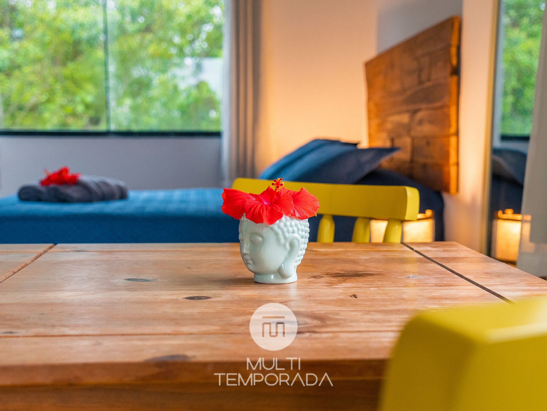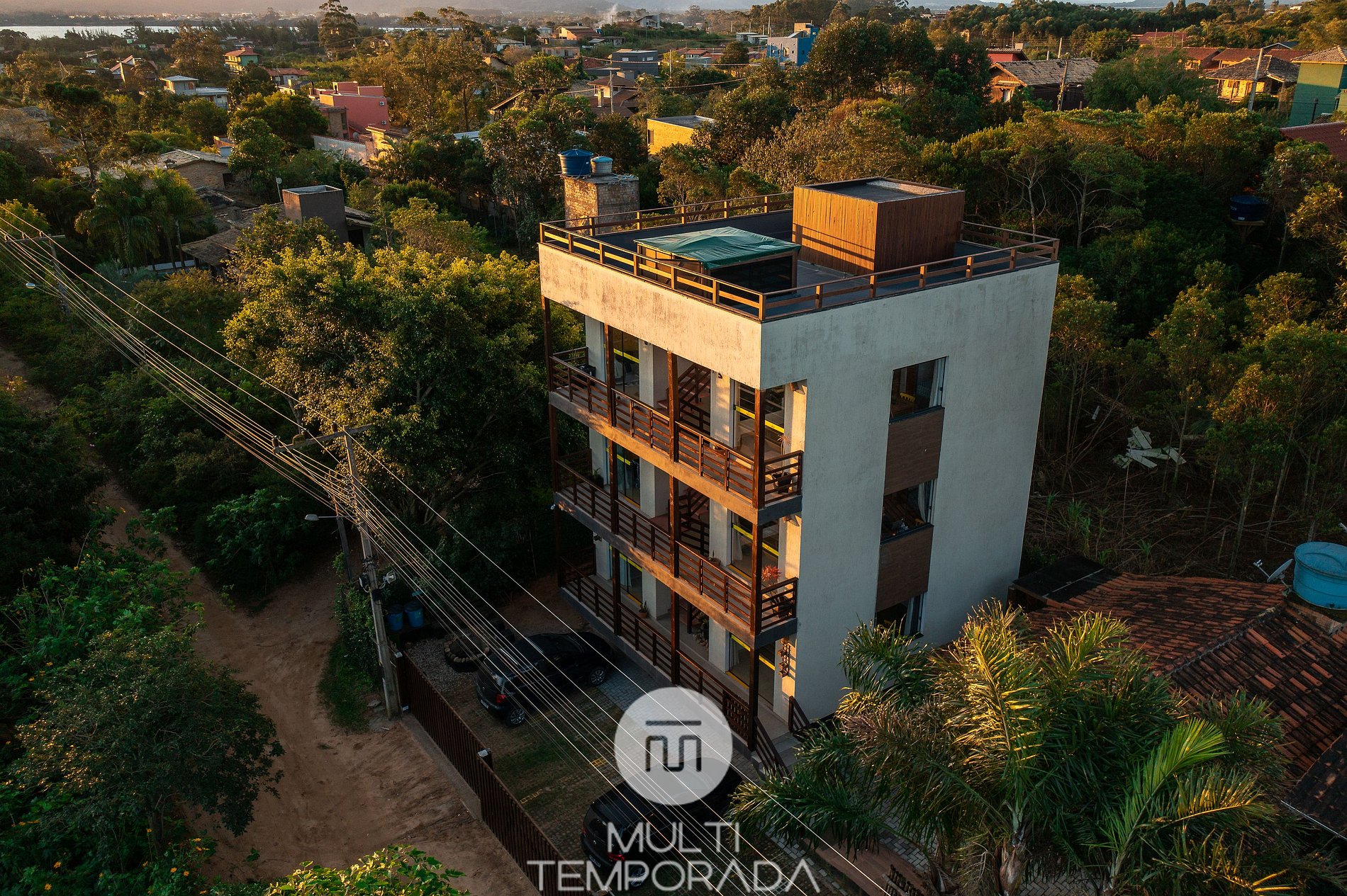 Multitemporada presents: Lugar ao Sol - Flats, located in Praia do Rosa. The space is cozy and pleasant for couples and groups of up to 4 people looking for comfort and a unique experience 900m from Centrinho do Rosa. Our space has a structure surrounded by nature, with Hindu decoration totally relevant to the beach region. There are 6 air-conditioned flats (2 per floor), with a full kitchen and balcony. Finally, we have a terrace with a privileged view of the sunset and the lagoon.