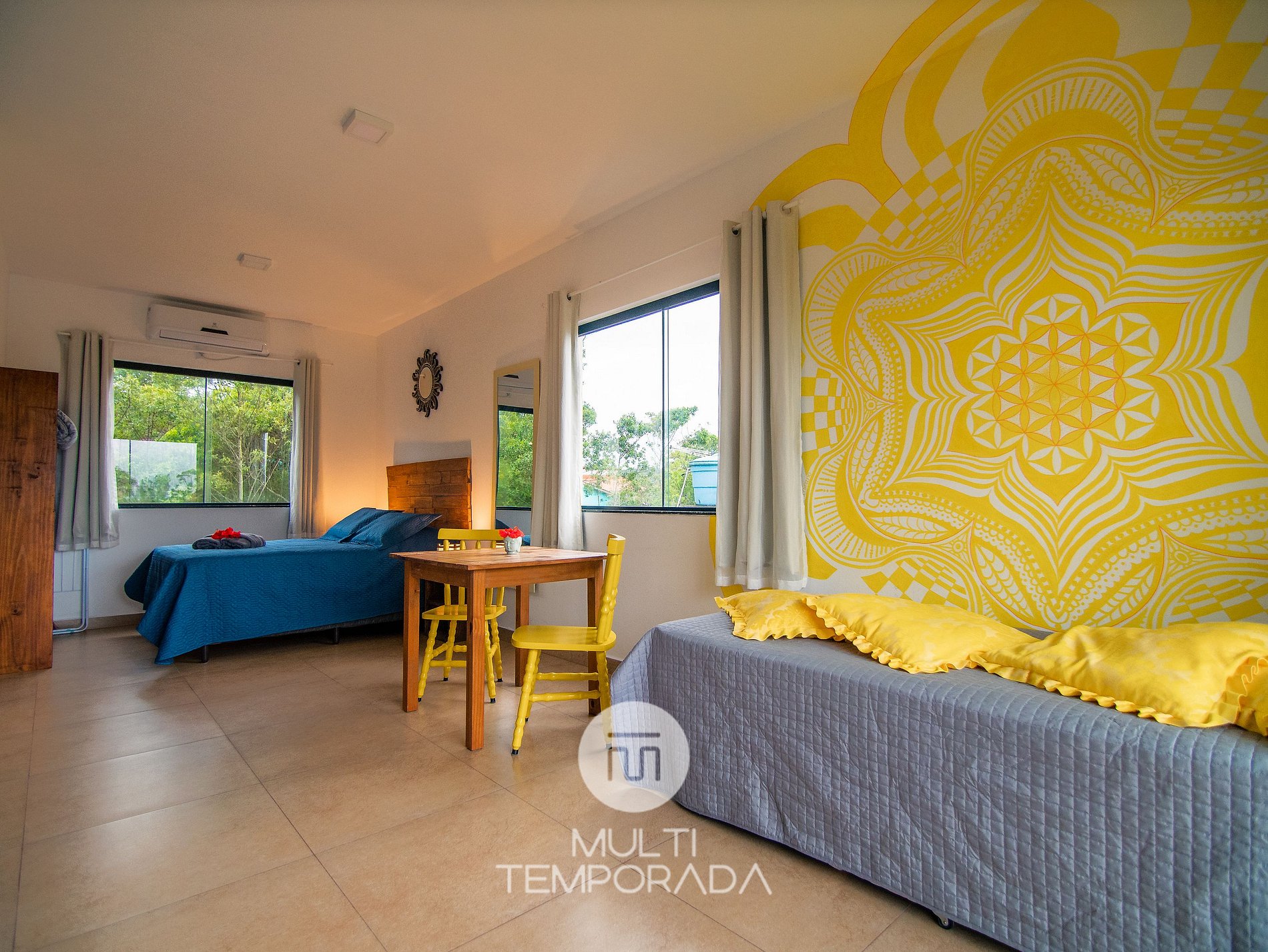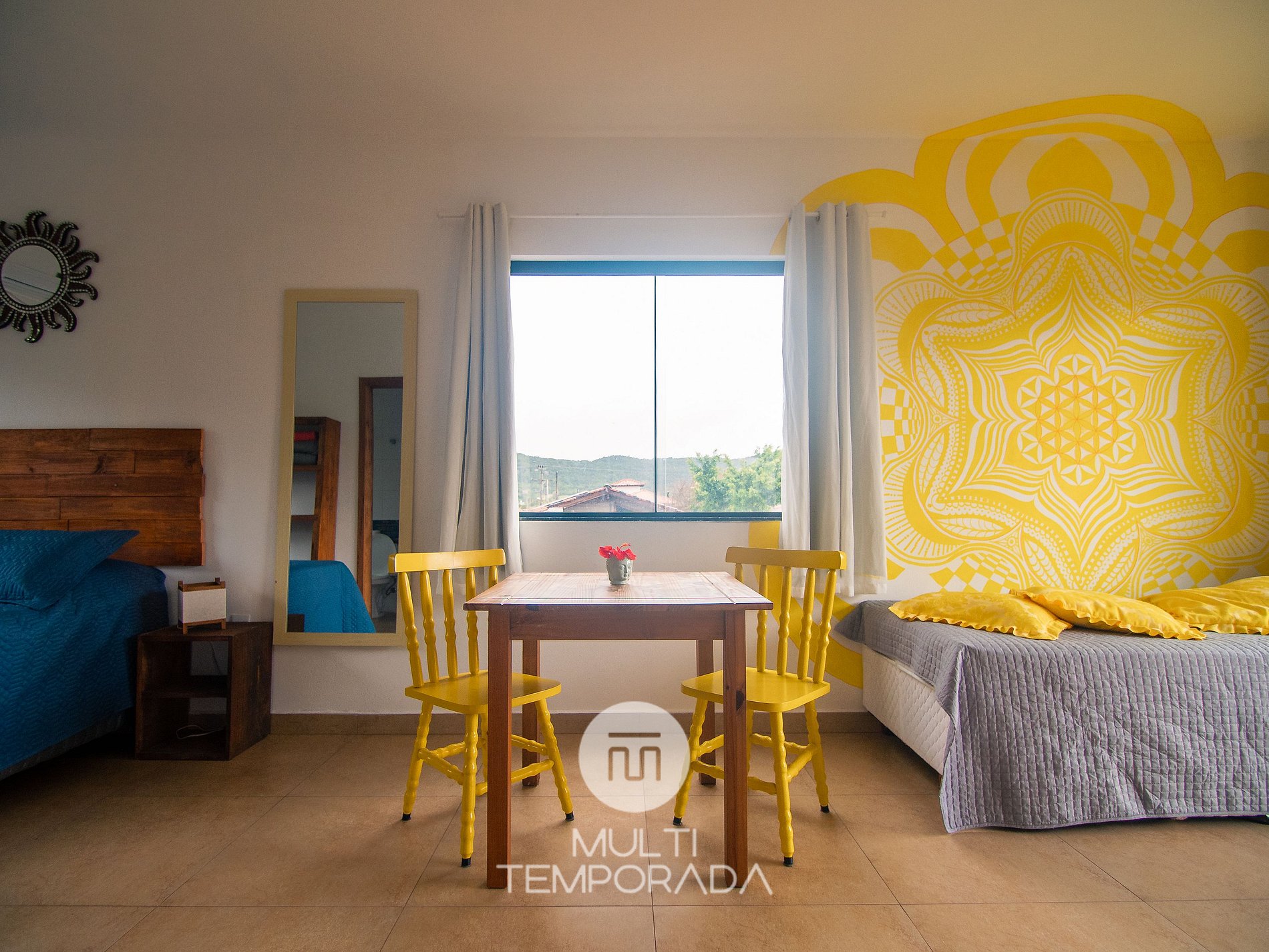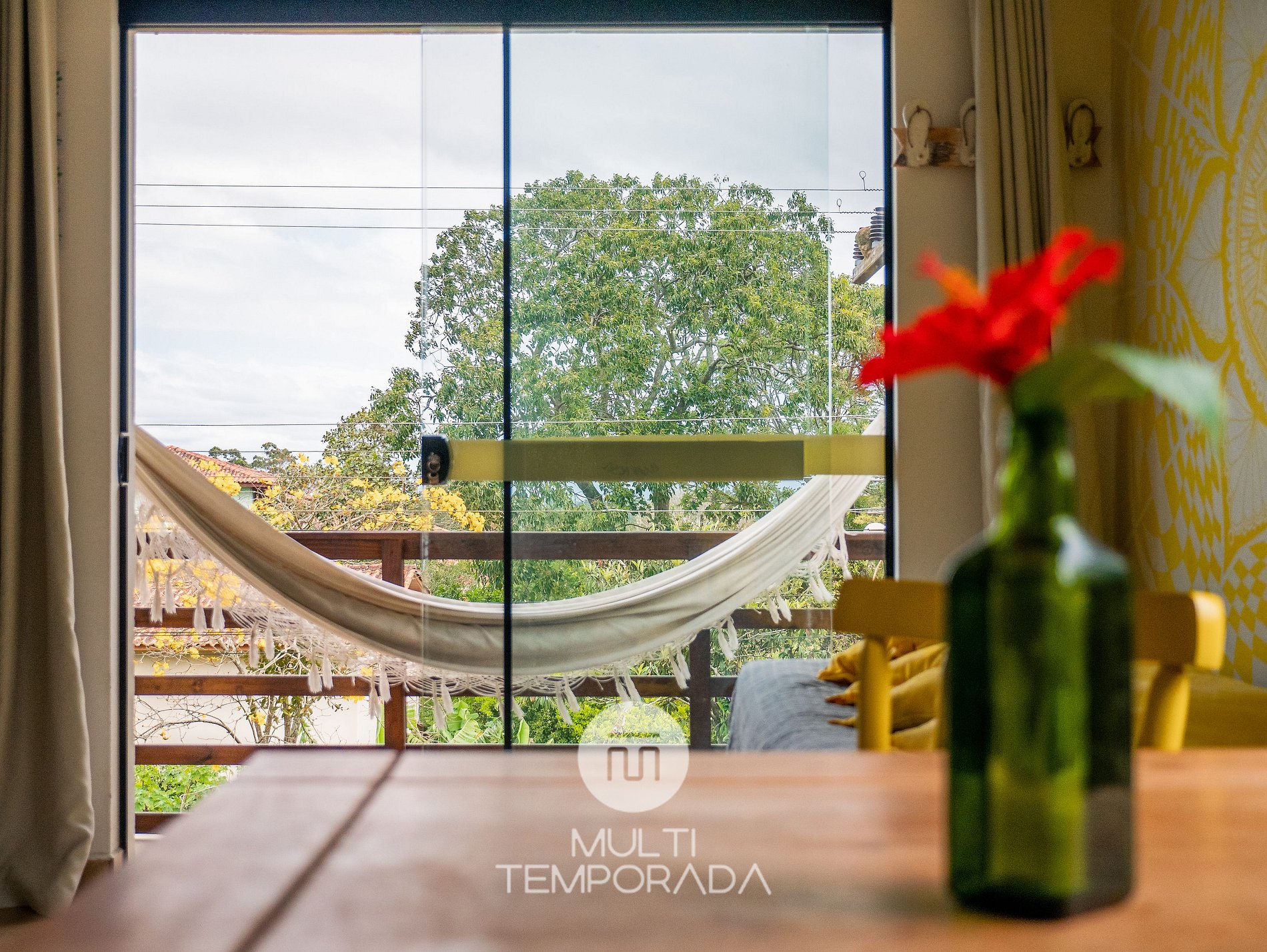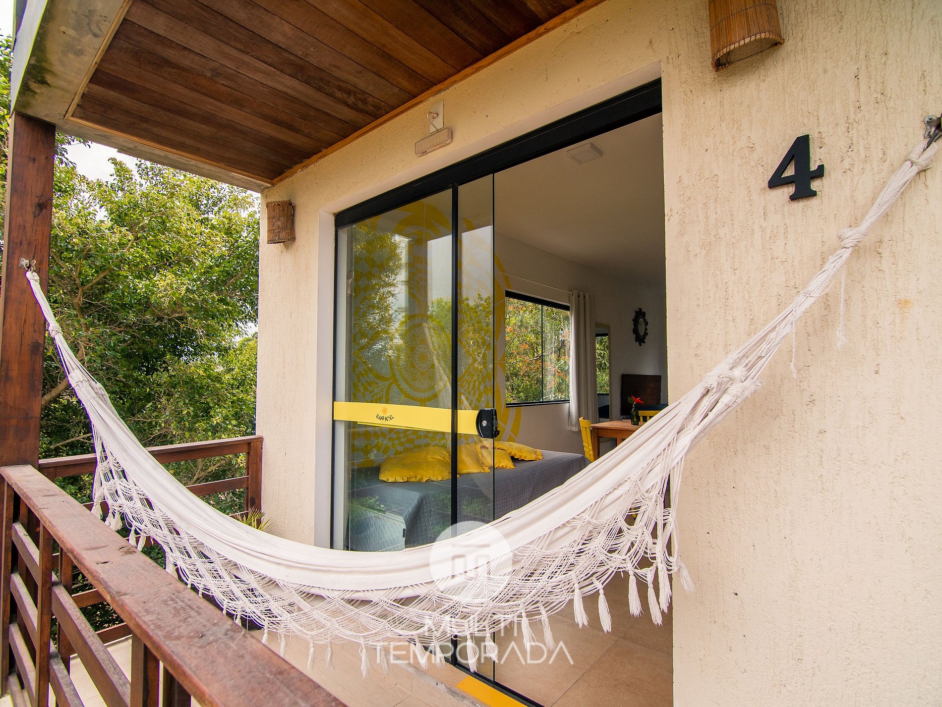Multitemporada presents: Lugar ao Sol - Flats, located in Praia do Rosa. The space is cozy and pleasant for couples and groups of up to 4 people looking for comfort and a unique experience 900m from Centrinho do Rosa. Our space has a structure surrounded by nature, with Hindu decoration totally relevant to the beach region. There are 6 air-conditioned flats (2 per floor), with a full kitchen and balcony. Finally, we have a terrace with a privileged view of the sunset and the lagoon.