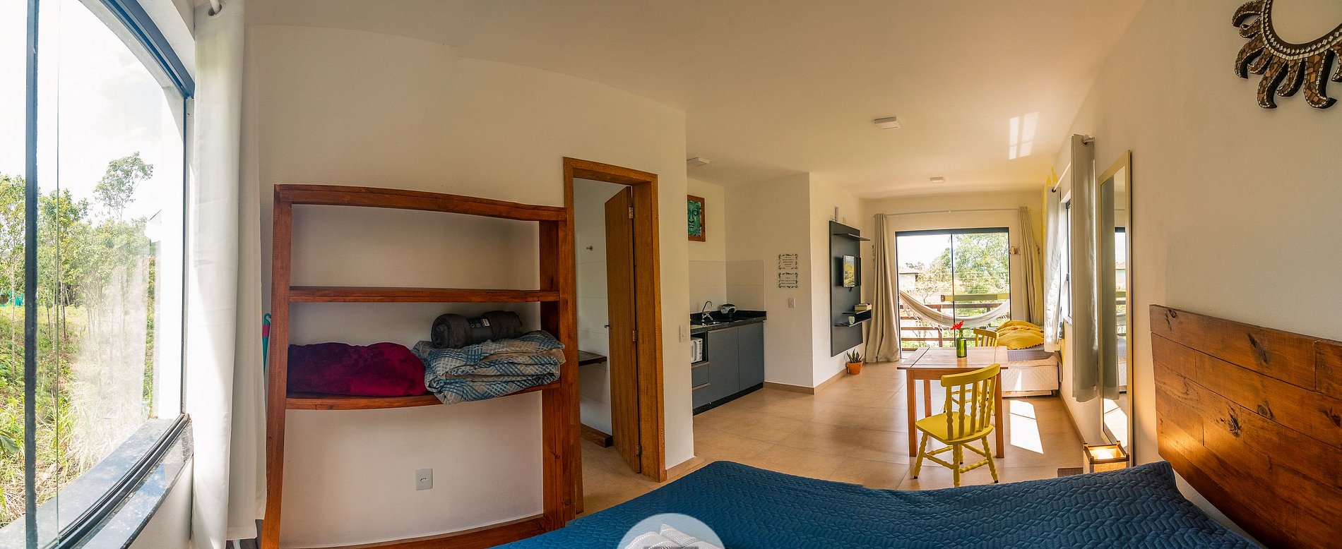 Gostei da localização, da decoração do flat, cozinha, banheiro, rede na área externa, tudo muito bem encaixado.