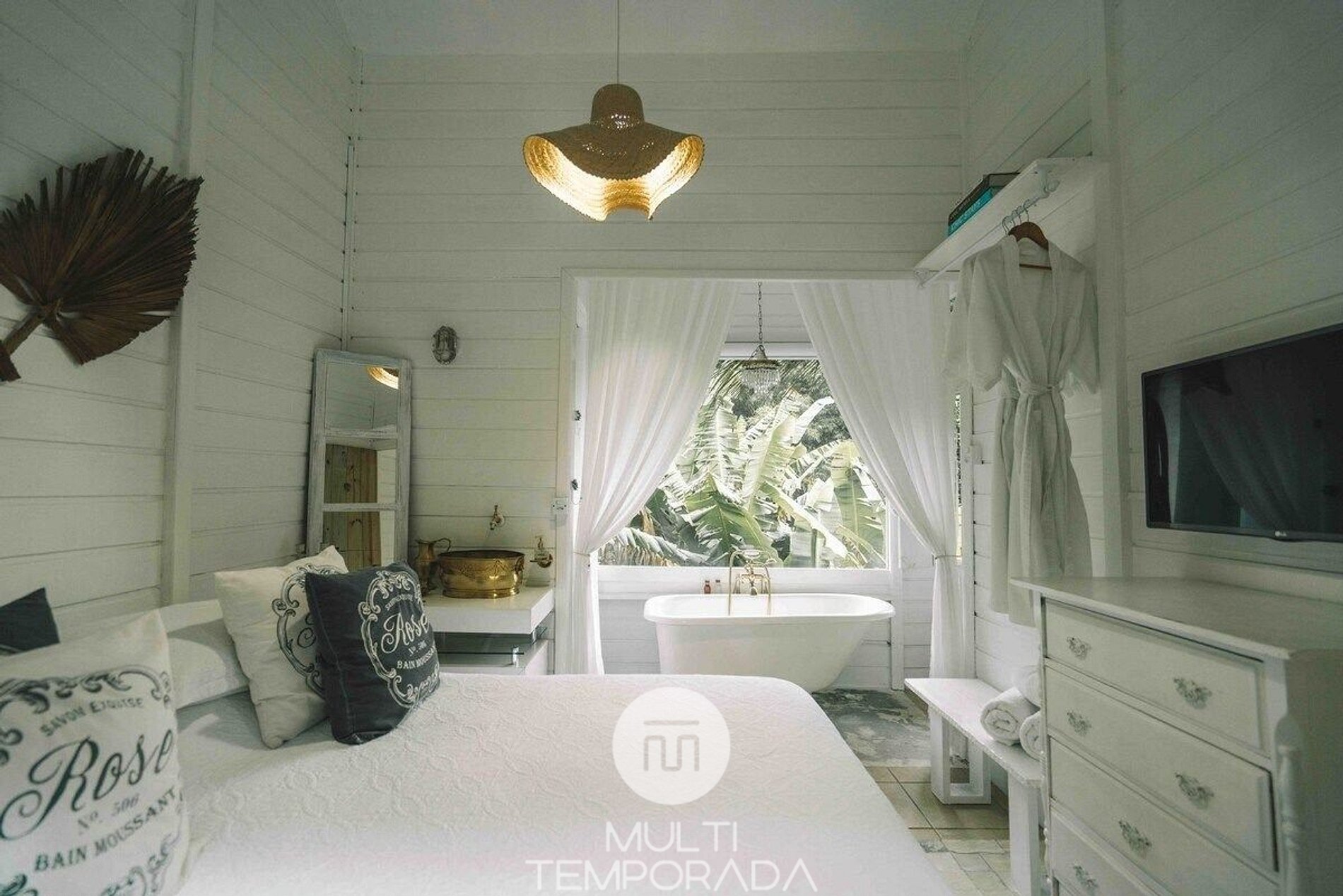 Strategically located amidst lush nature, CasaIvan combines tranquility, good taste and a new experience in accommodation. A pleasant feeling of staying on the beach and in the mountains at the same time. CasaIvan is my home where I live in Floripa. For 12 years I worked in hotels in London and after a holiday trip to the island of magic, it was love at first sight and so I decided that this was where I would live and also get my dream off the ground, having a guest house, with a modern footprint, full of style and with a new proposal, where hospitality and personalization were highlighted. Discover paradise at CasaIvan, a luxury house in Florianópolis that combines the charm of the beach and the mountains in a lush natural setting. I'm Ivan, passionate about hospitality, and I transformed my home into an exclusive refuge to offer a unique hosting experience. Our exclusive Chalet (24m²) is a masterpiece of design, created with care and passion by the host, reflecting his diverse lifestyle and influences. Upon entering, you will be welcomed by a cozy and relaxed balcony, where greenery blends with the decor, creating a perfect environment for relaxing. Enjoy an invigorating massage, gently swing in the hammock or enjoy breakfast al fresco, immersed in the lush nature around you. The kitchen, with high ceilings, is a delight for culinary lovers, equipped with a minibar, 2-burner gas cooktop, microwave, wood-burning stove, Nespresso coffee machine and high-quality utensils. The handmade decoration combines rustic and classic elements, providing a unique atmosphere. The bedroom is a haven of comfort and romance, with a luxurious queen bed for a refreshing night's sleep. For groups of 3 people we have a single bunk bed, ensuring comfort for everyone. The integrated bathroom offers modern amenities, including an electric shower, hot and cold air conditioning, 32'' Smart TV, premium bed and bath linen, amenities and a stunning free-standing bathtub, complemented by a large window overlooking the forest. Amenities: Soap, Shampoo/Conditioner, Spray and Bath Salts; When booking, you have exclusive access to the entire Chalet, guaranteeing privacy and tranquility. Enjoy a beautiful breakfast included in your stay. If you prefer, explore local options with the convenience of Ifood or use the full functional kitchen to prepare your meals. The timetable rules are CHECK-IN from 15:00 and CHECK-OUT until 12:00, subject to seasonal changes by prior arrangement. Attention to detail is our priority. We offer an ideal space for photo shoots and editorials, with prior notice and an extra fee. The professional team, led by me, Ivan, is on hand to make your stay perfect. Whether for tips about Floripa, tour suggestions or assistance in emergencies, we are here for you. Comments: - Hairdryer: 1 (upon availability); - Parking: 3 spaces (1 covered and 2 uncovered); - Photo shoots are allowed, but we have a different price list; - We have a small spa in the house and we offer a massage service (subject to availability and extra fee); - Firewood for the wood stove is courtesy of the house; - CasaIvan has a communal swimming pool, use by appointment; - If you have any questions, please contact Multimédia; Main Distances: Lagoa da Conceição: Approximately 10 km - A stunning lagoon with plenty of water sports, restaurants and nightlife options. Joaquina Beach: Approximately 15 km - Known for its perfect waves for surfing, it is a stunning beach with dunes and preserved nature. Jurerê Beach: About 15 km - One of the most famous and trendy beaches in Florianópolis, known for its calm waters and sophisticated setting. Historic Center: About 20 km - Where you will find colonial architecture, local markets and a unique cultural atmosphere. Praia Mole: About 25 km - A stunning beach with good waves, surrounded by mountains covered in Atlantic forest. Ostradamus: Located in Lagoa da Conceição, it is famous for its fresh oysters and seafood. Ponto de Vista Restaurante: Offers an incredible view of the city, combined with delicious regional cuisine. Try Azorean cuisine, typical of the region, with dishes such as the traditional "Bolinho de Bacalhau" and "Caldeirada de Frutos do Mar". Bar do Arante: Located on Campeche Island, it is known for its relaxed atmosphere and tasty dishes. Costa da Lagoa Trail: A charming walk along the coast of Lagoa da Conceição, surrounded by lush nature.