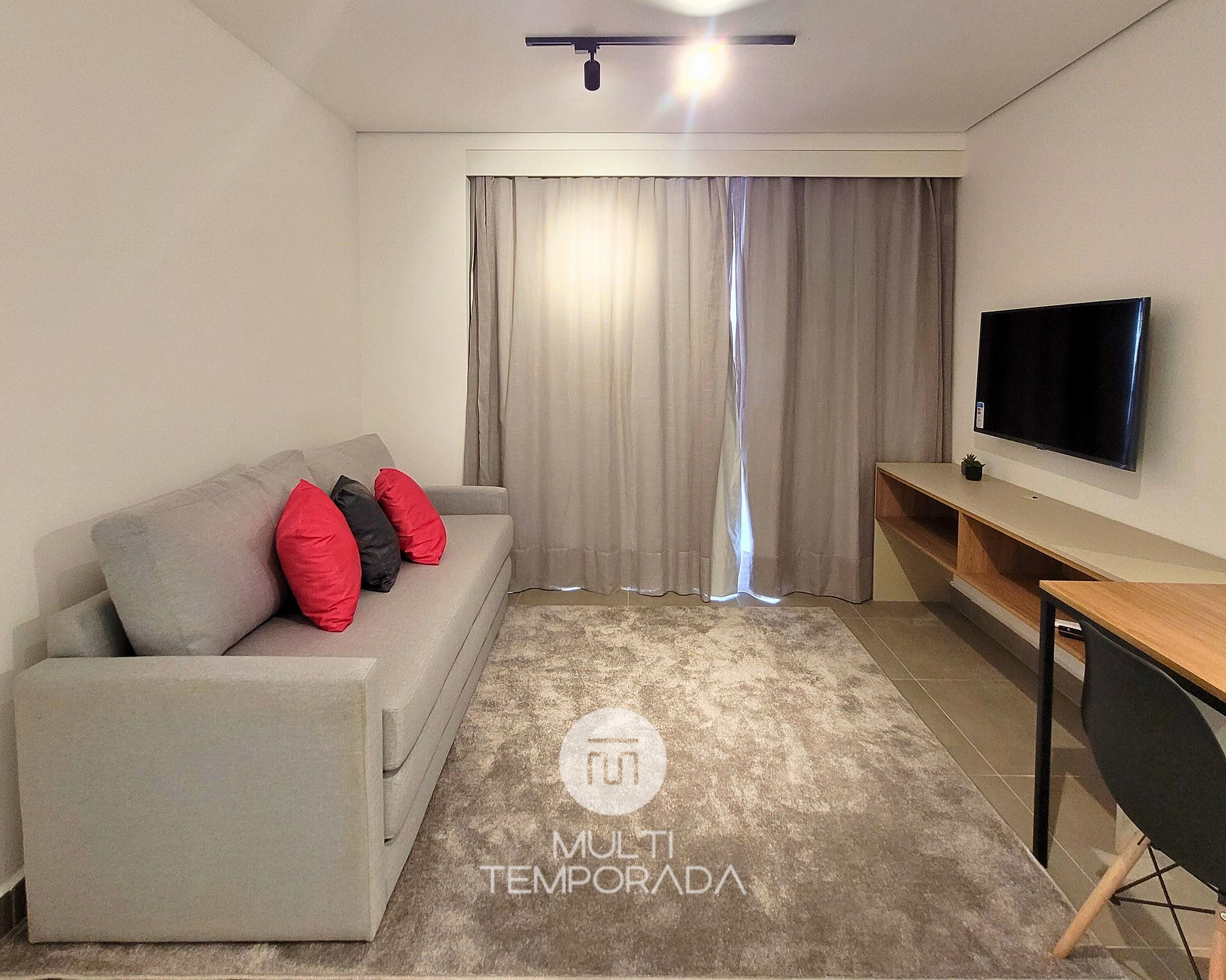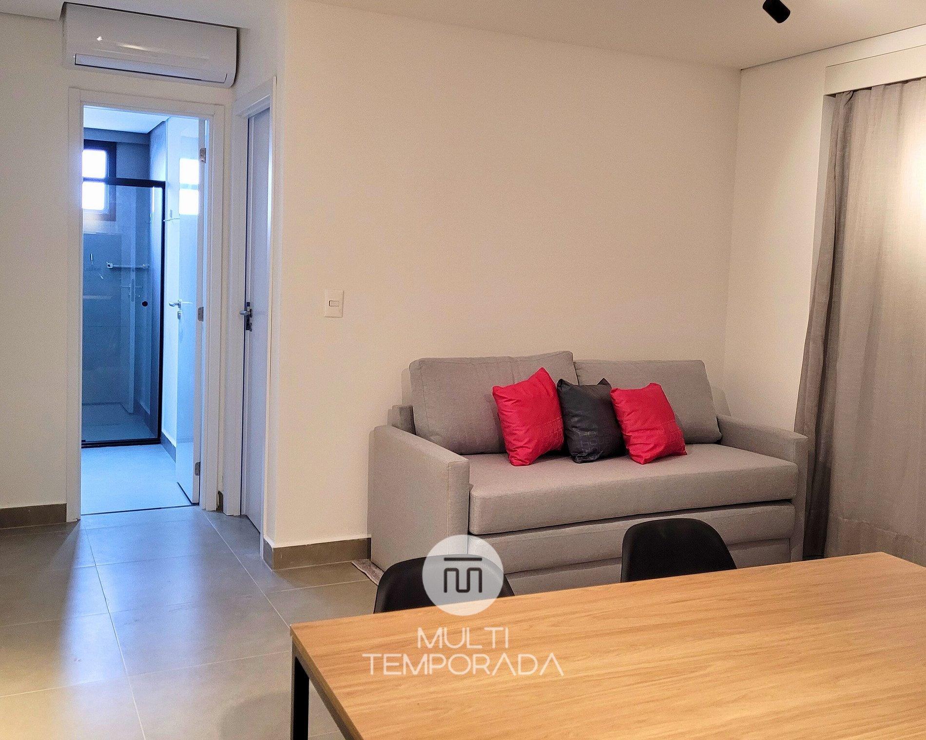 O apartamento permite duas pessoas porém é bem amplo com uma varanda super agradável e uma sala bem espaçosa.