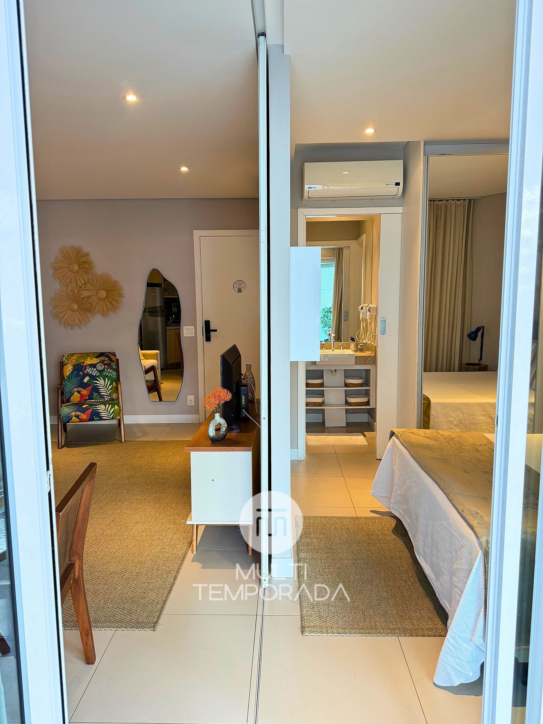 O espaço é indicado para casais e viajantes de negócios, também comporta um terceiro adulto ou até duas crianças. Super aconchegante com seus 45m que surpreende até mesmo uma pessoa exigente.