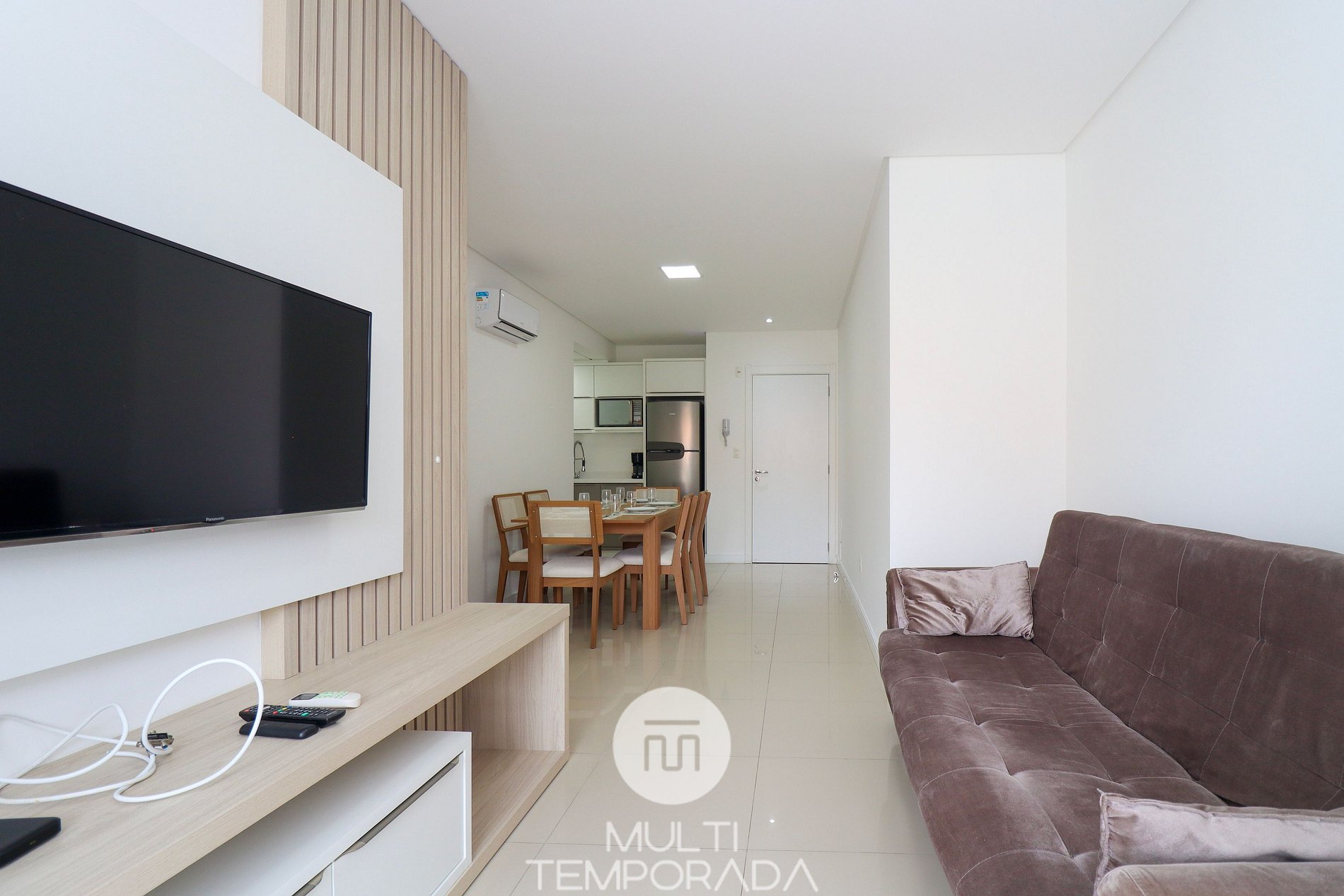Great apartment, 200 meters from the beach, consisting of two bedrooms, one suite with double bed, one bedroom with two single beds and an auxiliary bed, all rooms with air conditioning, guest bathroom, balcony with charcoal barbecue and sink , full kitchen, laundry area with washing machine and sink. It has a parking space, has Wi-Fi and cable TV.