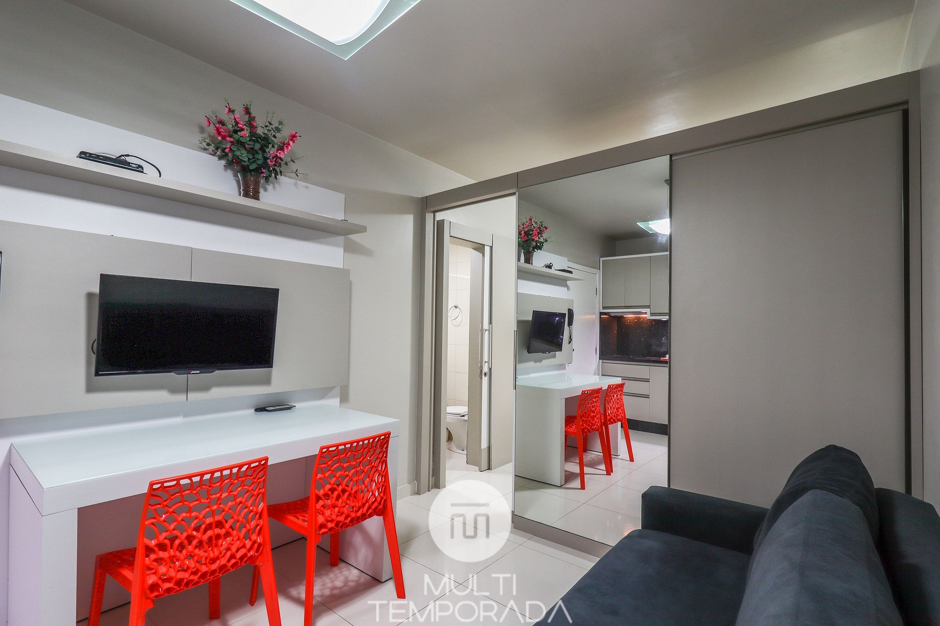 Studio moderno e recém reformado. Vista para o mar como prometia pelas fotos. TV e internet funcionando certinho Otimo split Grande diferencial é ter geladeira ao inves de frigobar